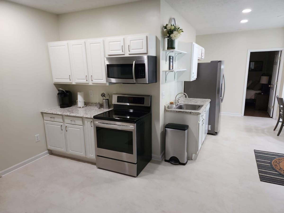 Üdvözöljük a Casa De Costello-ban, újonnan felújított, első emeleti alagsori lakosztályunkban, amely Peachtree City szívében található. Élvezd a híres erdővel borított golfkocsi-útvonalainkat, amelyek tökéletesek futáshoz, gyalogláshoz és kerékpározáshoz. 30 mérföldre Atlantától és 7 mérföldre a Trillith Studios épületétől. Gyere haza, és pihenj meg otthonos privát helyünkön. Ez a lakosztály egy hálószobát kínál king méretű ággyal, teljes méretű fürdőszobával, tágas teakonyhával és egy nappalival, amelyben Apple TV található.