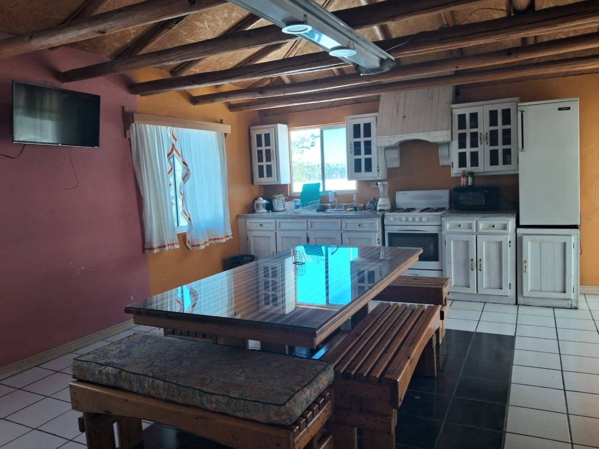 Lleva a toda la familia a este fantástico lugar, un espacio agradable, en una zona cercana al centro de pueblo, 5 minutos caminando, rodeado de naturaleza en donde toda la familia puede explorar y pasar momentos increíbles, tenemos lo indispensable para que tu estancia sea cómoda, estamos seguros de que vas a querer volver a hospedarte con El profe Carlos y Karla. Nora: Aceptamos a tus mascotas!