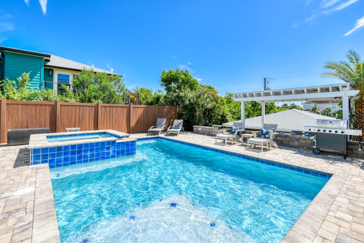 * 2023-ban épült – luxus tengerparti bútorok és ágynemű * Szerepelt a 2024-es Good Housekeeping Mag-ban🌟 * 2 King lakosztály (emeletenként 1) | 2 Queen hálószoba | 3,5 fürdőszoba * Privát sós vizes medence és gyógyfürdő/pezsgőfürdő * Medence melletti kabin | Kültéri konyha | Elülső verandán * Kerékpárok, strandjátékok, strandszékek * Buja trópusi tereprendezés * 0,2 mérföld - gyönyörű csendes strand * 5,5 mérföldre - történelmi belváros St Augustine - Az Egyesült Államok legrégebbi városa! * 0,2 mérföld - Cap's Restaurant for sunset dinner on the water