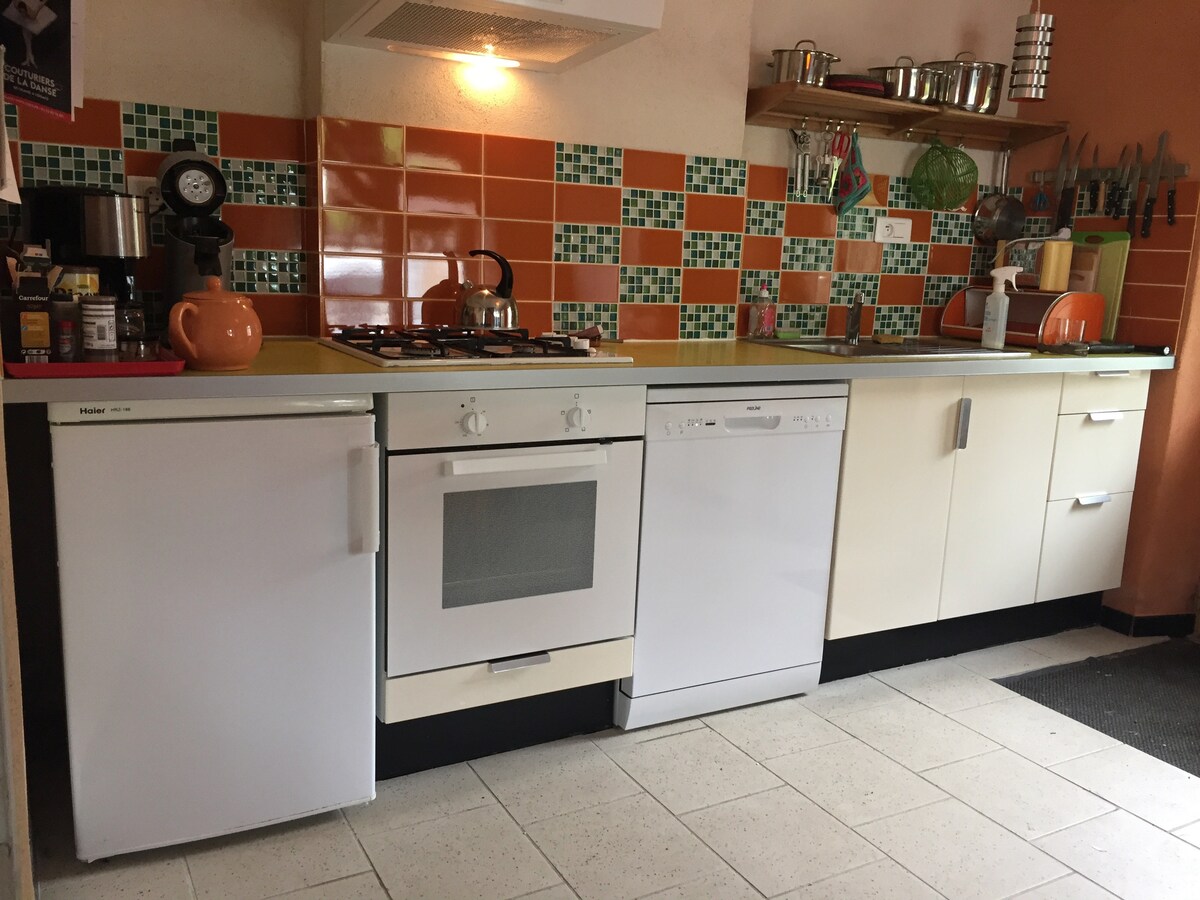 Gyönyörű lakás egy 19. századi kastély 2. emeletén, egy évszázados park szívében, a Le Petit Futé ajánlásával. Elvarázsolt enklávé a város közepén, kevesebb mint 5 perc sétára a vasútállomástól és a turistaközponttól. A két hálószoba nagyon tágas, mindegyikhez tartozik egy 160x200-as ágy és egy íróasztal. Egy nagy kanapé kínálja az 5. ágyat. A teljesen felszerelt konyha, amely a nappaliba nyílik, ideális nappalit kínál a kiadós reggeli és reggeli elfogyasztásához.