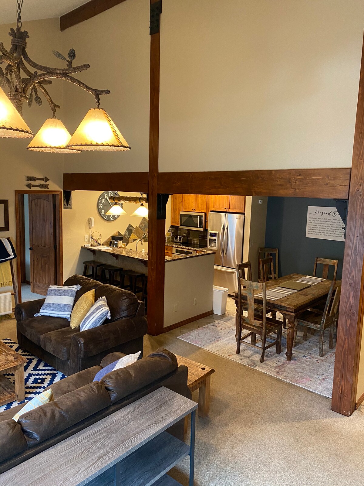 Ski, ride, hike, or roll right out the front door. No schlepping. Finish the day on your top-floor balcony facing endless peaks. • Located at the Trailhead • Top-Floor Unit = Huge Mtn. Views • 3 Bedroom • 8 Beds +2 travel cribs • 2 Baths • Sleeps 10 • Free Private Car Service within CB & Mt.CB (Fri & Sat 4P–Midnight) • Two Parking Space • 2 Smart TV +Fast WiFi • Sauna STR license 312446.Emergency Contact/Local Rep contact info on MtCB website and navigate to the Short-Term Rental page.
