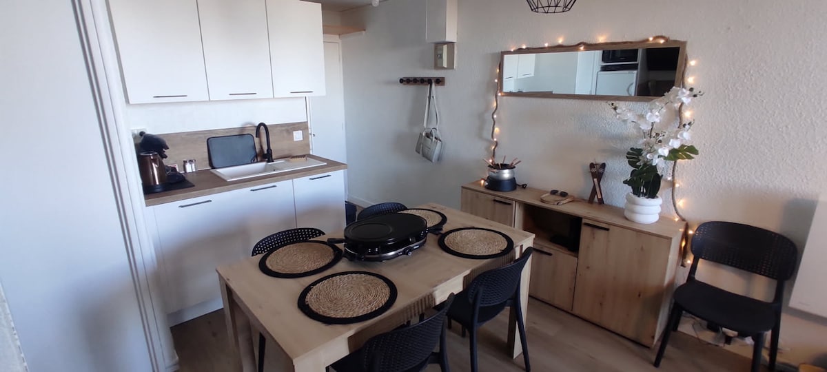 Studio cosy à Chamrousse, classé 2 étoiles, situé au pied des pistes, pour 2 à 4 personnes. 2 couchages en lit escamotable et un canapé-lit convertible de qualité. Récemment rénové, ce studio est entièrement équipé : four, micro-ondes, cafetière Dolce Gusto, bouilloire, grille-pain, lave-vaisselle, TV, sèche-cheveux. Profitez également d'un balcon avec vue, d'un casier à ski et d'un parking privatif couvert. La navette gratuite de la station a un arrêt au pied de l'immeuble durant la saison.