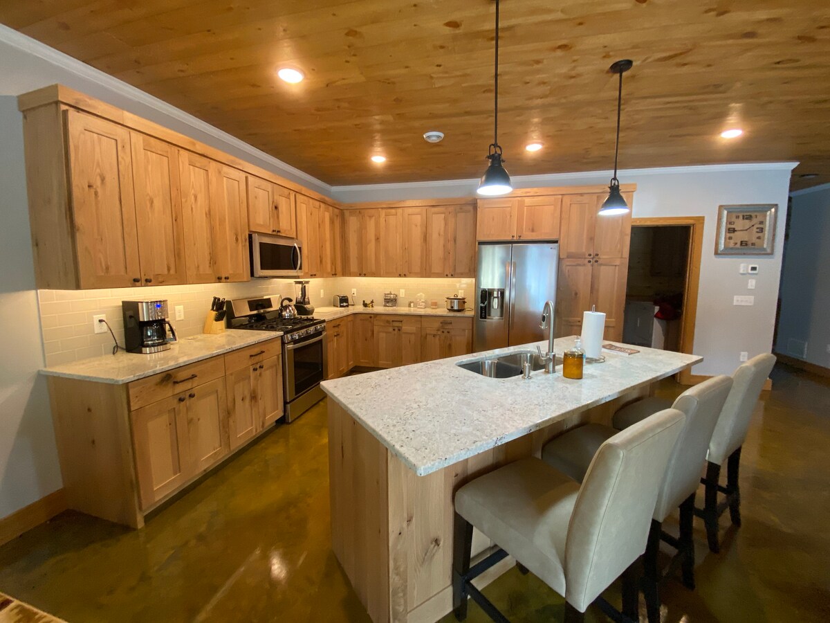 Üdv a Woodland Hideawayben, egy tóparti szálláshelyen, ahol pihenhetsz, feltöltődhetsz és újra kapcsolatba léphetsz a világgal. Élvezd a nyugodt tóparti kilátást és a csendes pillanatokat egy saját mólóval rendelkező privát tónál. Ez a rusztikus és modern stílusú víkendház teljesen fel van szerelve a kényelmes tartózkodáshoz. *Kajakok/SUP-ok használata *Teljes konyha, mosás *Grillező, szabadtéri ülőhely *Légkondicionáló és beltéri kandalló *Állatbarát *Szúnyoghálós verandán lehet pihenni, hogy legyen rovarmentes az este *Extra nappali/alvóhely a felújított garázsban (tökéletes a nagyobb magánélethez)