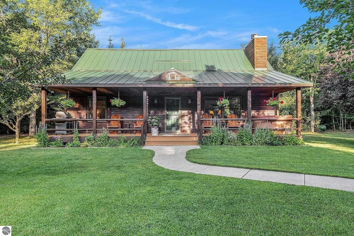 This lovely Bungalow on 5 acres is nestled along 1000ft of the Boardman River. We have kayaks, hammock, outside dining/living area with fireplace, and hot tub. The property is surrounded by state land and trails, perfect for hiking, kayaking, side by sides, and snowmobiling. The kitchen is fully stocked with basic condiments. The bathroom has towels, a hair dryer, small toiletries and soaps. WiFi will help you stay connected. Perfect for a honeymoon stay or couples getaway! 25 minutes to TC.