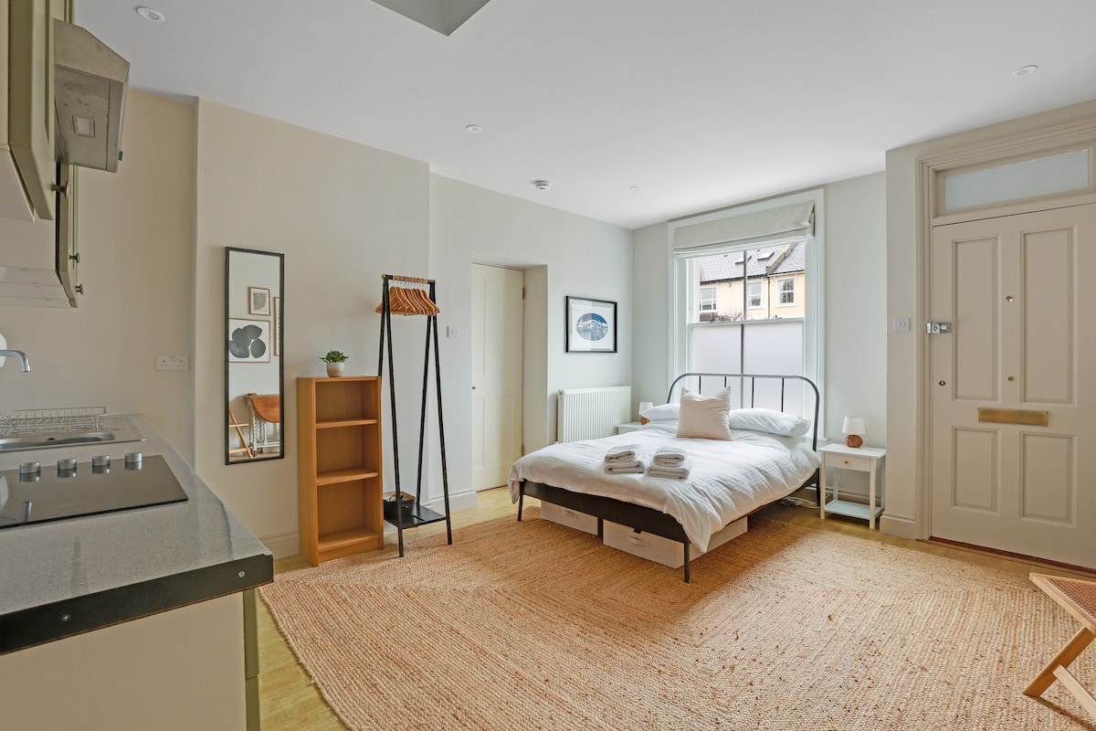 14-es stúdió, a viktoriánus pompa és a legmodernebb élet mesés fúziója. TELJESEN ÖNÁLLÓ stúdióapartman KÖZÖS HELYISÉGEK nélkül. 2022. november 1-től LÉGKONDICIONÁLÓVAL és HÁROM ÜVEGEZETT ABLAKKAL az általad választott hőmérséklet fenntartásához és az olyan utcai hangok megszüntetéséhez, mint a forgalom stb. A teljesen felszerelt konyha, a tágas zuhanyzó és az épület hátulján található helyszíni mosodánk további fontos jellemzőkkel bír, valamint az első osztályú szállítás közvetlenül London belvárosába.