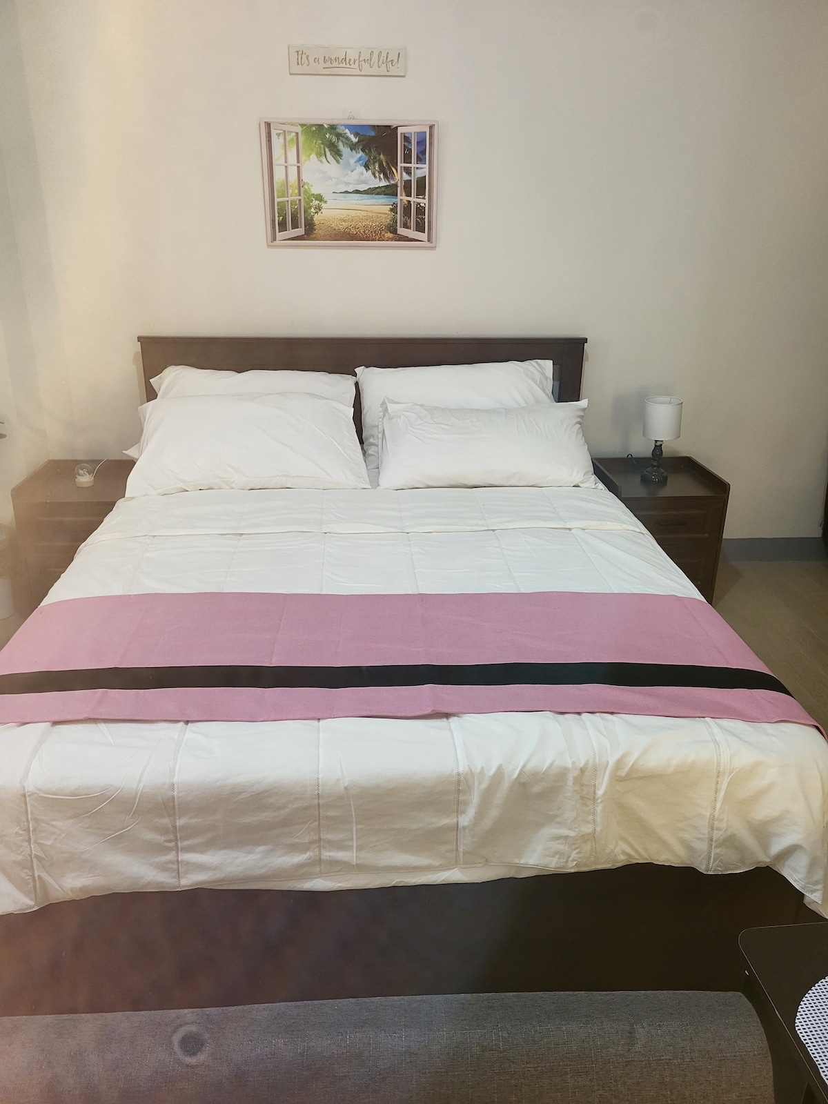 Imagine your 5 minute walk home from a concert at Araneta Coliseum or New Frontier Theatre. Art in Island, Bellini's, Habanero Cubao Expo are definitely walkable distance from the condo. Get your seafood fix at Dampa after a swim in the pool or shopping at Gateway Mall. Equipped with both task and mood lighting, the unit is great for work from home and staycations. The stay includes same building access to parking, pool, gym, billiard table, jogging trail, basketball court and 24/7 security.