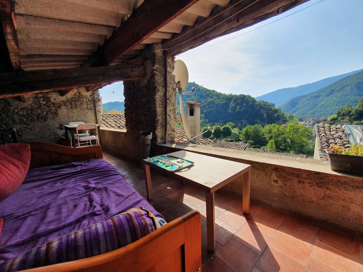 A lakhatás loftstílusú lakás. Nem érhető el a csökkent mozgásképességűek számára. A falu délkeleti oldalán található, nagyon napos reggel és friss délután . Tökéletes párok vagy egyedül utazók számára. Nyugodt, ideális a természet szerelmeseinek, számos sétalehetőség. ágy 4 főre (egy kétszemélyes ágy 160 főre és egy kiváló minőségű kanapéágy). Ascros faluja másfél órányi autóútra van Nizzától.