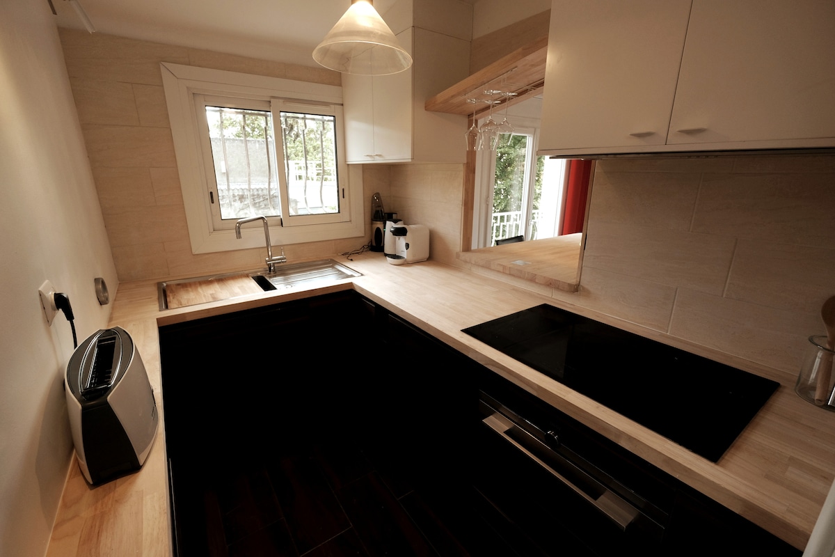 Coconfort is a bright and elegant apartment in a lush green setting. 27 m² (290 sq ft) fully renovated: - Separate, fitted kitchen. - Dedicated sleeping area with storage and a small office, elegantly separated from the living area, which benefits from a terrace overlooking the residence's grounds. - Bathroom with toilet, shower, and washing machine. Bed made, one towel provided. This quiet ground-floor apartment does not overlook the street. Easy and direct access with secure private parking.