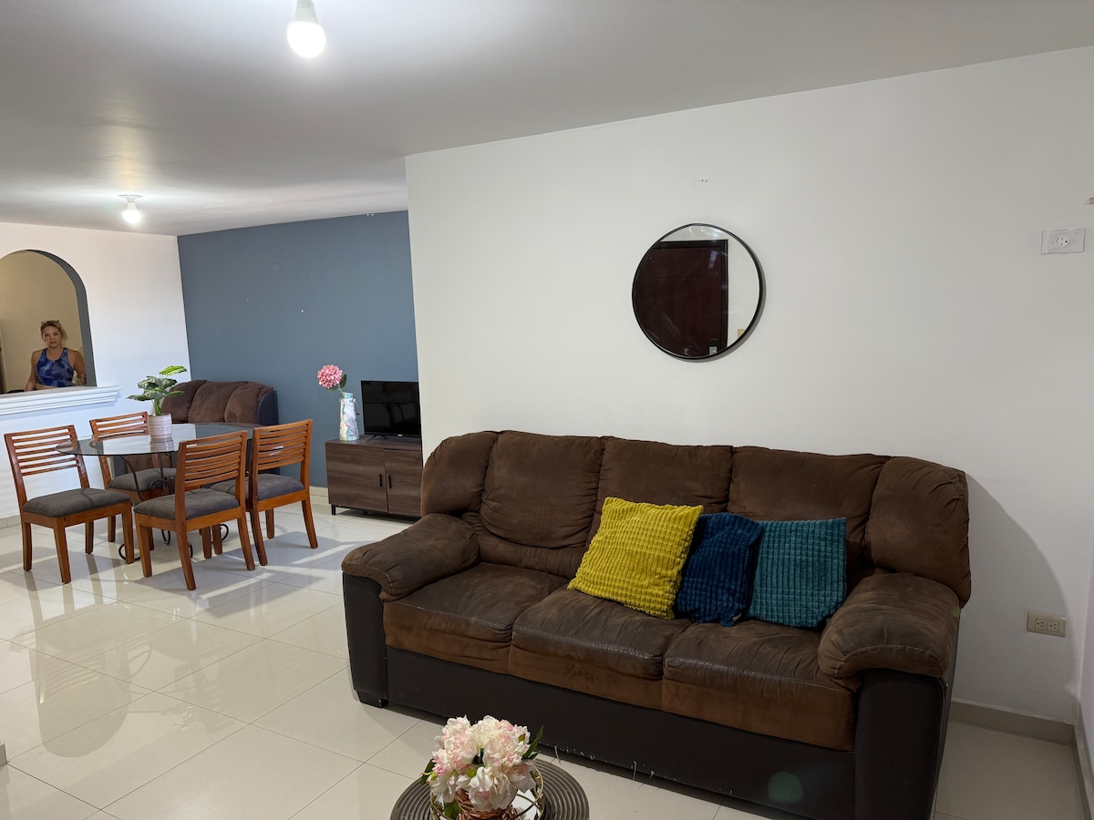 Tágas és kényelmes lakás, tökéletes rövid vagy hosszú távú foglalásokhoz. Csak 3 háztömbnyire a Soriana La Campiña-tól, 2 percre a malecóntól és 10 percre a belvárostól. Biztonságos, privát családi komplexumban található. Teljesen légkondicionált, nagy sebességű Wi-Fi, okostévé Netflix-szel és egy privát parkolóhely. Ideális a pihenéshez vagy a nyugodt munkához!