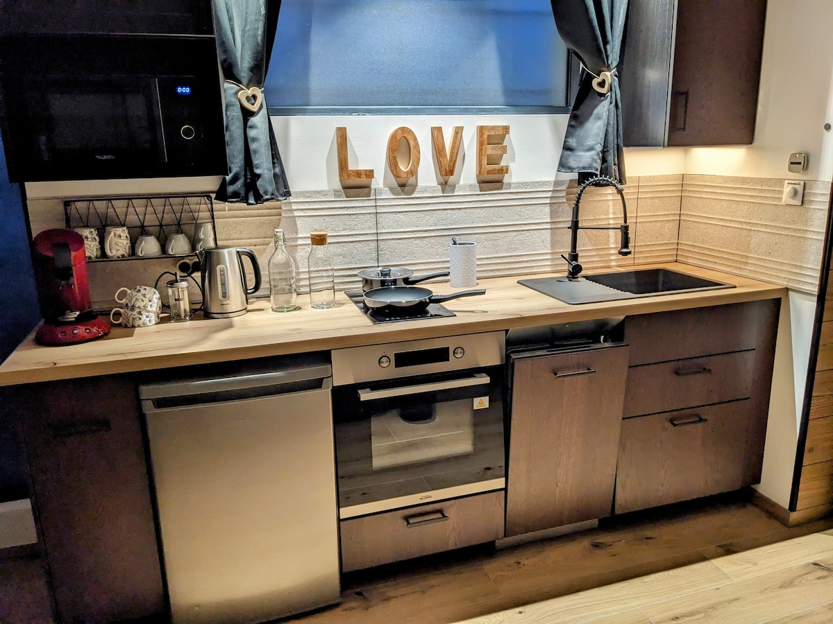 Bienvenue dans une love room hors du commun !🌲 Plongez au cœur de la forêt avec un lit queen size ultraconfortable, surmonté d'un ciel étoilé scintillant.✨ Détendez vous dans la baignoire balnéo, entourée de verdure et sous la douche cascade pour une immersion totale en pleine nature. Profitez de soirées cinéma 🎬 sur grand écran au coin du feu et d'un distributeur de pop-corn.🍿 Parfaite pour un séjour romantique, cette suite mêle nature et luxe pour des souvenirs inoubliables.❤️