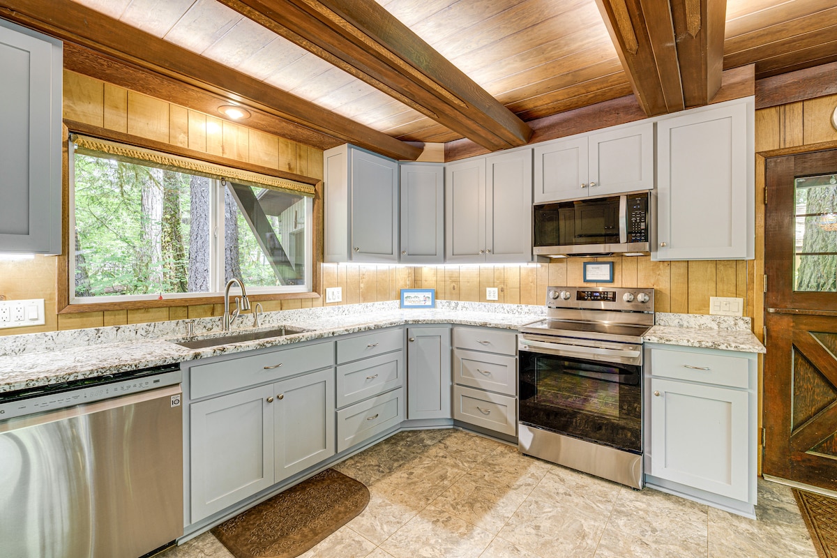 Our cozy cabin is an excellent getaway for anyone who just wants to be surrounded by everything that Central Oregon has to offer. With the National Forest and the La Pine State park just a few minutes away, there are options for hiking, biking, swimming, fishing, kayaking, paddle boarding or ATV rides. During the winter season, activities such as snowboarding, skiing, sledding, and snow mobile rides are only within 40 minutes away at Mt. Bachelor. City life in Bend is only 30 min away.