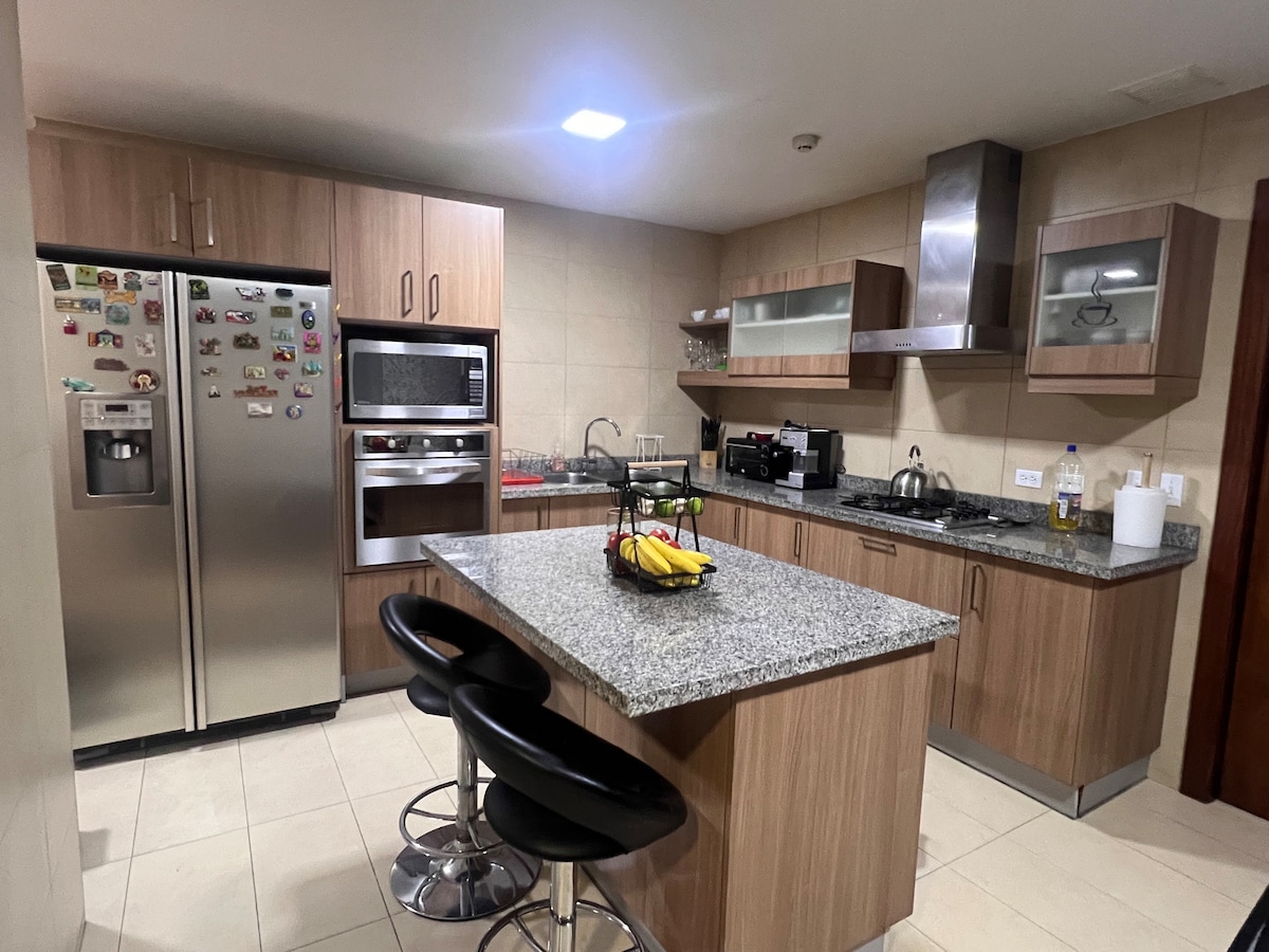 ¡Üdvözlünk az ecuadori Quitóban található exkluzív helyünkön! Meghívunk, hogy merülj el egy olyan környezetben, amely az ecuadori partvidék meleg esszenciájával egyesíti az ecuadori Andok lényegét. A város északi részén, a „Parque La Carolina” közelében található modern épületben található részlegünk egy kincs vár rád. ¡Várjuk, hogy gyönyörű élményben legyen részed az Airbnb-n!