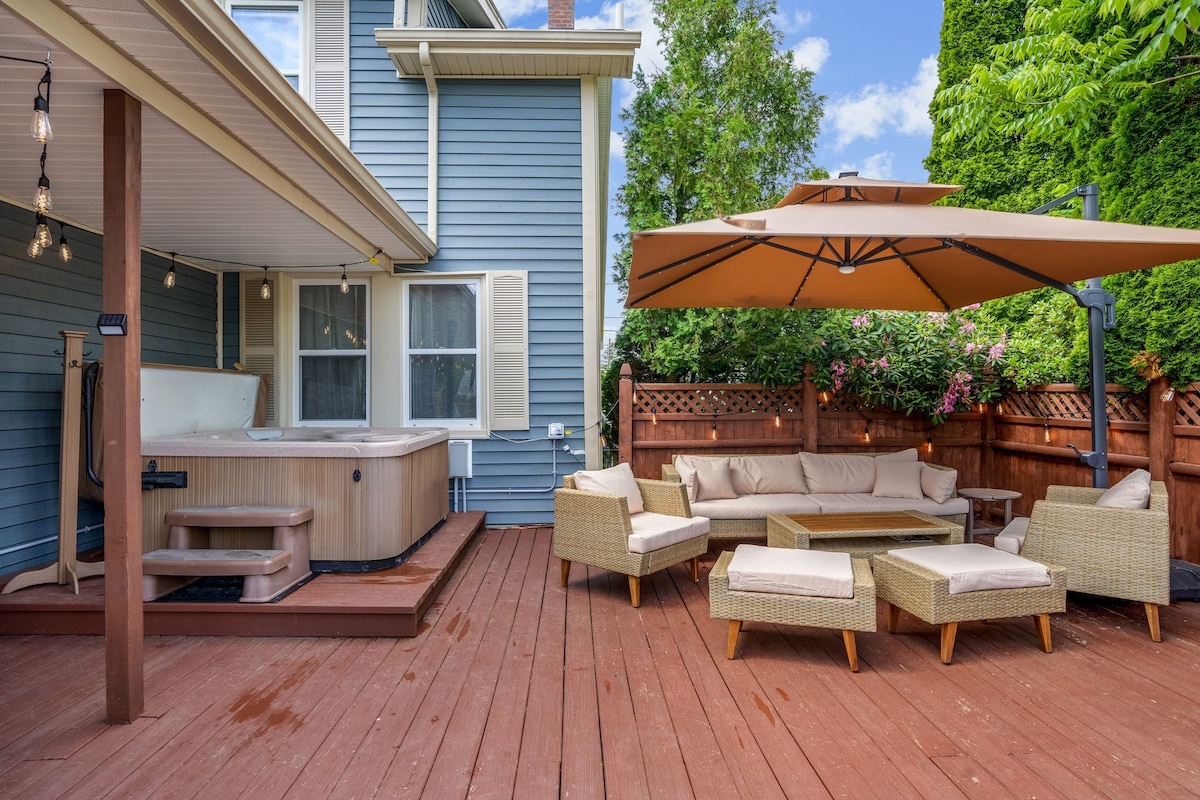 A Deering Highlands lábánál található felújított lakosztályunk 10 perces autóútra van Portland belvárosától. Hangulatos, csendes, modern hely tengeri élettel. Egy rövid sétára Woodford sarkától és a Forest Ave-től, amely számos étteremnek és kávézónak ad otthont. A szálláshely szezonális medencével és egész évben nyitva tartó pezsgőfürdővel várja vendégeit. Ideális szingliknek, pároknak vagy pároknak egy vagy két kisgyerekkel. Legfeljebb három felnőtt elhelyezésére van lehetőség. A pezsgőfürdő egész évben rendelkezésre áll. A medence június elejétől szeptember végéig tart nyitva.