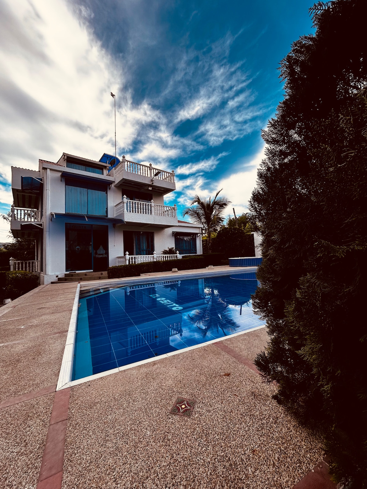 Casa Quinta El Osito es un refugio campestre, agreste y tranquilo, a 30 min de Melgar y Girardot. Disfruta una piscina gigante con jacuzzi, cocina con horno de barro tradicional y espacios amplios para cumpleaños, quinceañeros y celebraciones. Sus tonos azules y baldosas llenas de diseño crean un ambiente fresco. Ideal para descansar de ciudad con internet incluido. Servicio de cocinera si se necesita. IG: @LePremierReveCarmenDeApicala