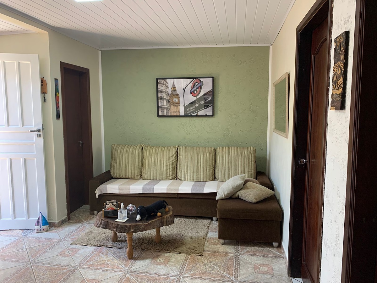 Hangulatos,biztonságos és családbarát hely egy lakóövezetben. 10 percre van a repülőtértől. Könnyen megközelíthető Curitiba (18 km), és már úton van Santa Catarinába vagy São Paulóba. Internet , 200 csatornás okostévé +. 01 autós tér a zárt teraszon. Mivel lakóövezetről van szó, a szomszédok embereinek, járműveinek és állatainak külső zaja hallatszik. Lépcső vezet a szálláshely tetején található privát térre. Fürdőlepedők és ágyneműk is rendelkezésre állnak.