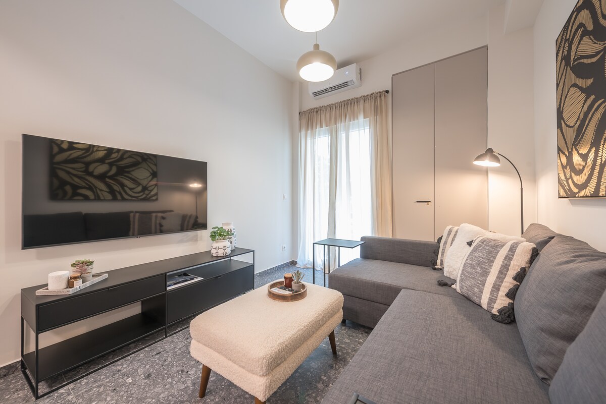 The apartment is located in the center of Piraeus and next to the port. Metro, airport connection, ferries, train, suburban train, bus station and tram all within 100 meters. Central location!! The apartment you are going to stay in is brand new and fully renovated with bedroom, kitchen, living room 69 square meters with high standards and designed by an excellent architect. Located on the 4th floor. It is comfortable and luxurious to make your stay unforgettable!