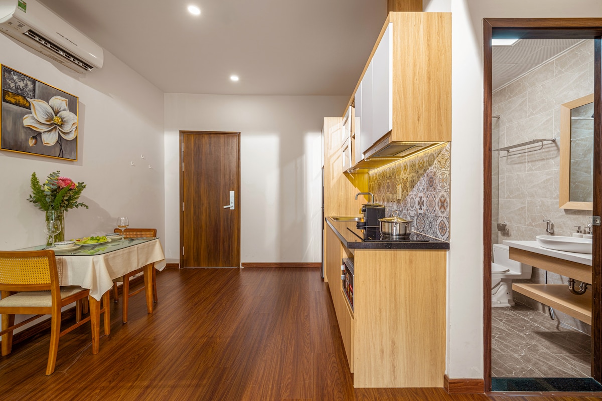 ⚜️ Üdvözlünk a My Khe strand túloldalán található egyedi lakásunkban. Aprólékosan megtervezett, tengerparti témával és csúcskategóriás belső terekkel van felszerelve. A 45 m2-es, elegánsan berendezett lakóterülettel rendelkező tengerparti lakásunk felejthetetlen nyaralást ígér. ⚠️ Fontos megjegyzés: Szálláshelyünk közvetlenül a központi strandon található, közvetlenül a főtérrel szemben, ahol az ünnepi események zajlanak.