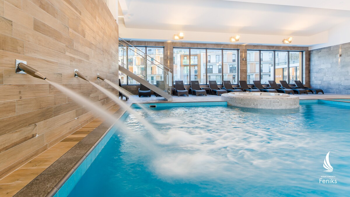 ÜDVÖZÖLJÜK A LENGYEL TENGERNÉL KÉNYELMES, EGÉSZ ÉVBEN HASZNÁLHATÓ LAKÁSOKBAN. Kényelmes és otthonos 2 ágyas lakás teakonyhával és 25m2-es, tágas zuhanyzóval ellátott fürdőszobával. Az apartman egy teraszos kijárattal rendelkező épület földszintjén található. A teakonyha felszerelése lehetővé teszi, hogy könnyen elkészítsd az ételeket, és élvezd őket egy kényelmes asztalnál. Van egy privát parkoló és egy fűtött medence (az ünnepi szezonban). Egész évben használható szauna (felár ellenében).