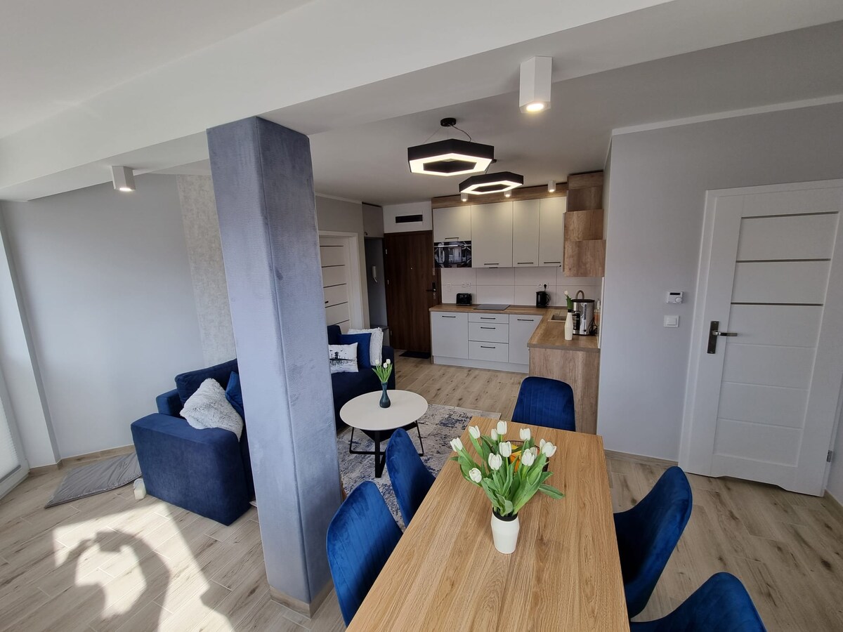 Újonnan felújított lakás Ustka központjában, mindössze 8 perc sétára a strandtól. Két szobából áll: egy hangulatos hálószobából és egy kanapéággyal felszerelt nappaliból. Az apartman modern fürdőszobával és teljesen felszerelt konyhával rendelkezik: mosogatógép, mosó-szárítógép, hűtőszekrény, sütő. A helyszín rendkívül kényelmes: 13 percre a vasútállomástól, 5 percre a buszmegállótól és 2 percre az üzlettől. Éttermek és gyógyfürdő közelében. Tökéletes egy pihentető tengerparti kiruccanáshoz.