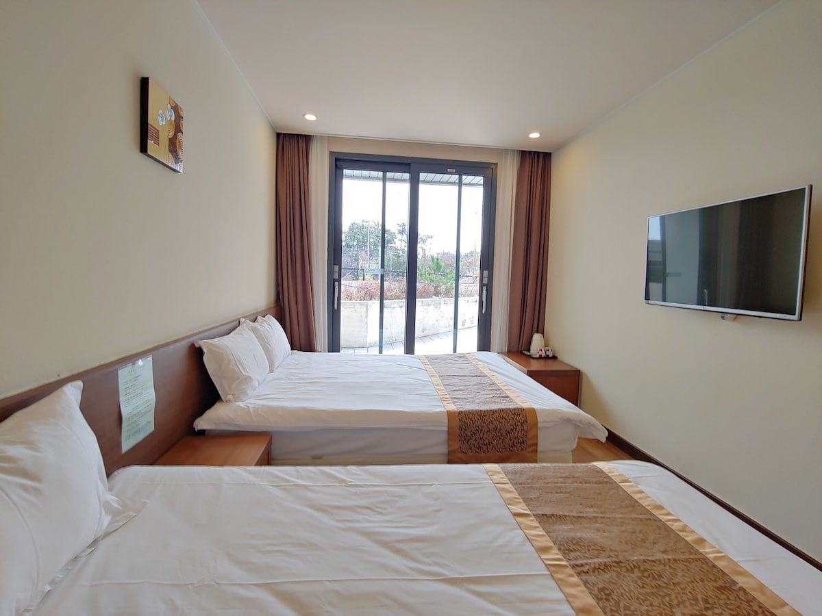 Jeju Ocean Blue Hotel_9 pyeong 1. emeleti lakosztály (dupla + egyszemélyes) / Jungmun Beach, turisztikai komplexum közelében