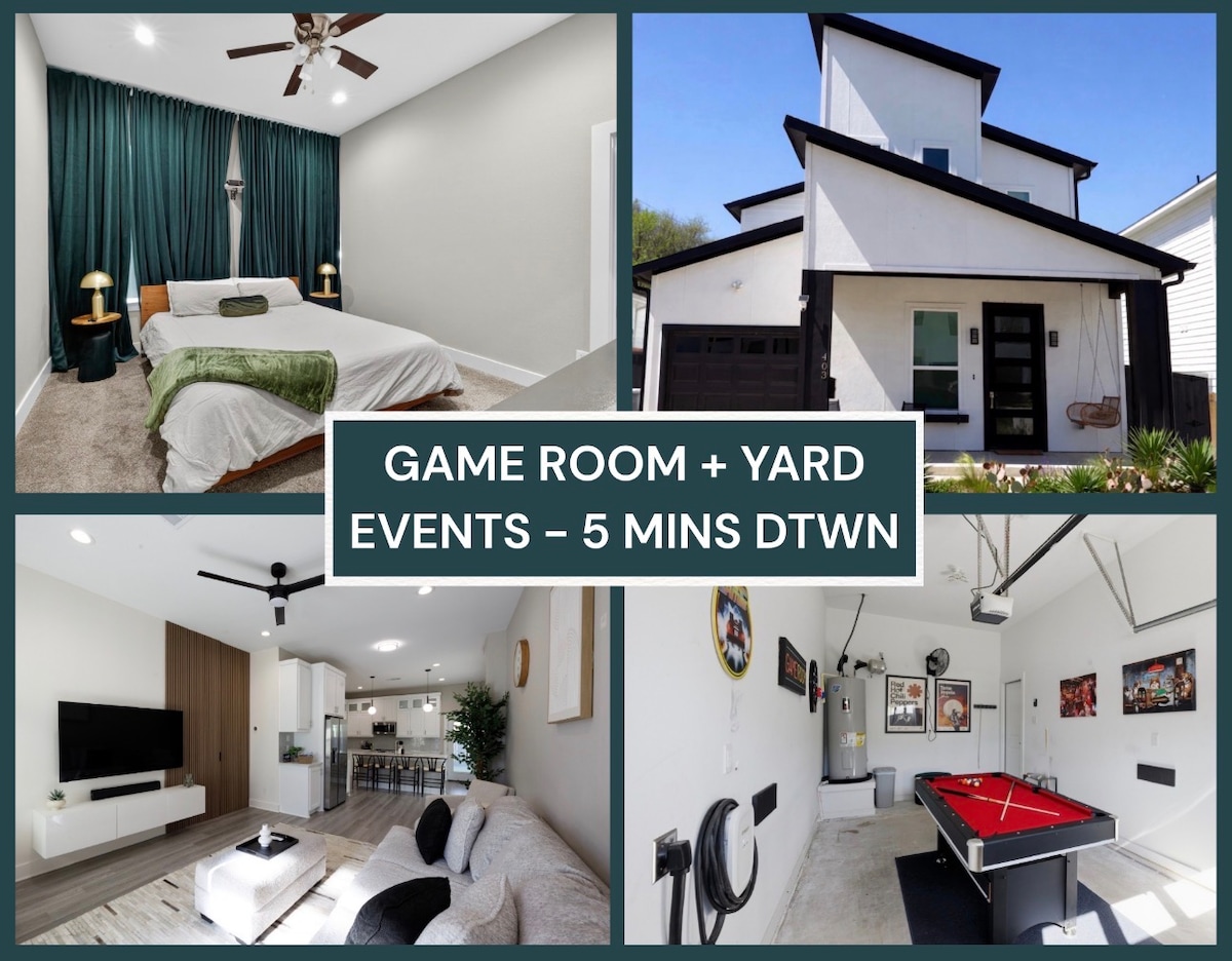 Üdvözöljük a Giddy Up Getawayben!! – egy stílusos, többszintes nyugati üdülőhelyen Dallas szívében! Ez a 3 hálószobás, 3,5 fürdőszobás szálláshely akár 10 fő elszállásolására is alkalmas, és tágas nappalival, konyhával, játékteremmel és saját terasszal rendelkezik a szabadtéri étkezéshez és pihenéshez. Csak néhány percre a belvárostól, az AAC-től és a White Rock Lake-től, könnyen megközelíthető a Love Field, a DFW és az AT&T Stadium, így tökéletes kiindulópont családok, csoportok vagy játéknapok számára.