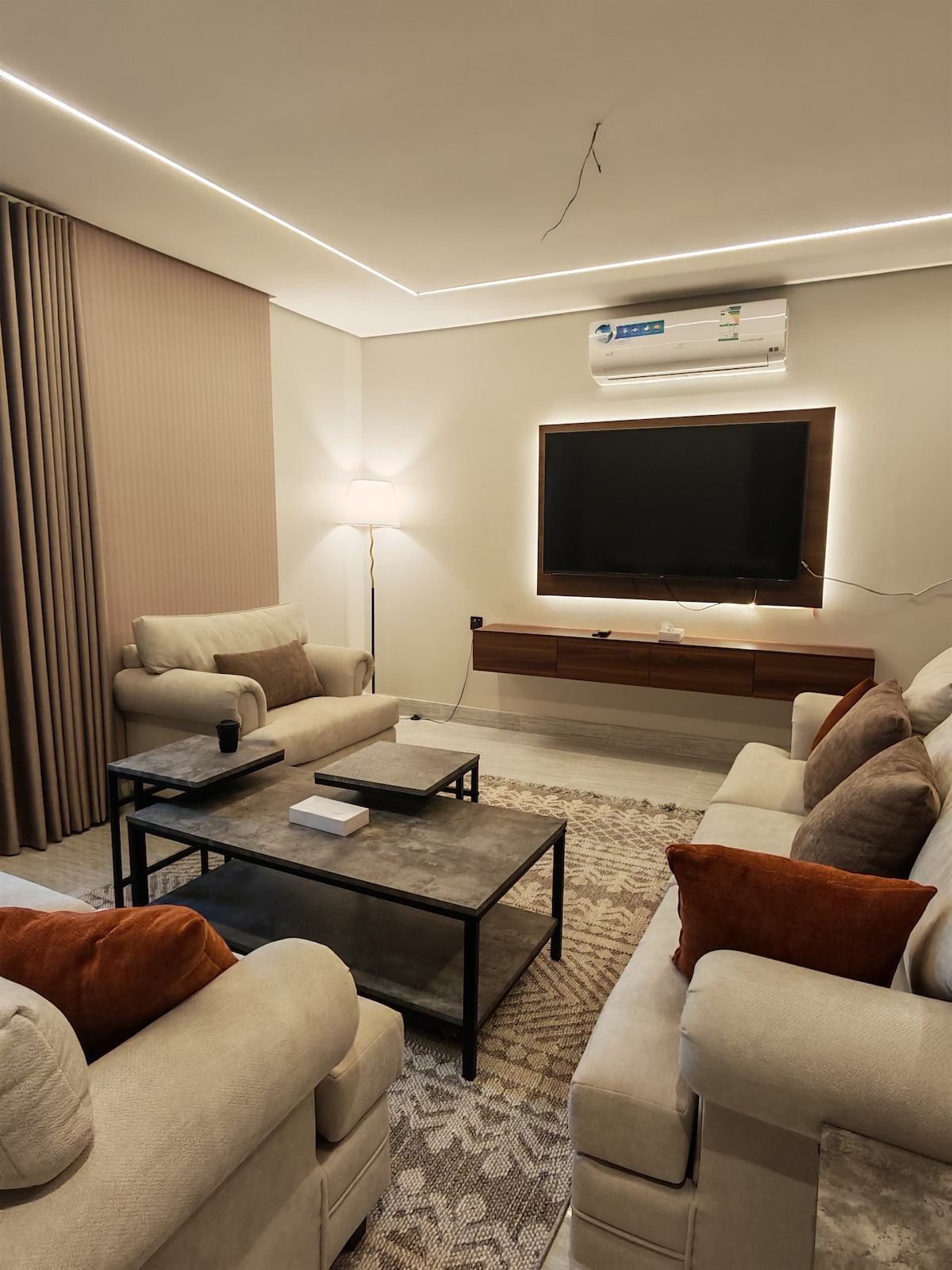 Enjoy a luxurious tropical Bali-inspired stay 🌿 Designed with warm wooden elements and lush greenery to create a relaxing atmosphere. 🛏 King-size bedroom 🛋 Spacious living room with sofa and open kitchen ☕ Coffee corner with complimentary hospitality 📺 Smart TV 📶 High-speed WiFi 🔐 Self check-in for full privacy 📍 Located in Al Rakah Al Shamaleya, close to the waterfront and amenities. Perfect for couples, small families, or guests seeking a premium tropical-style stay.