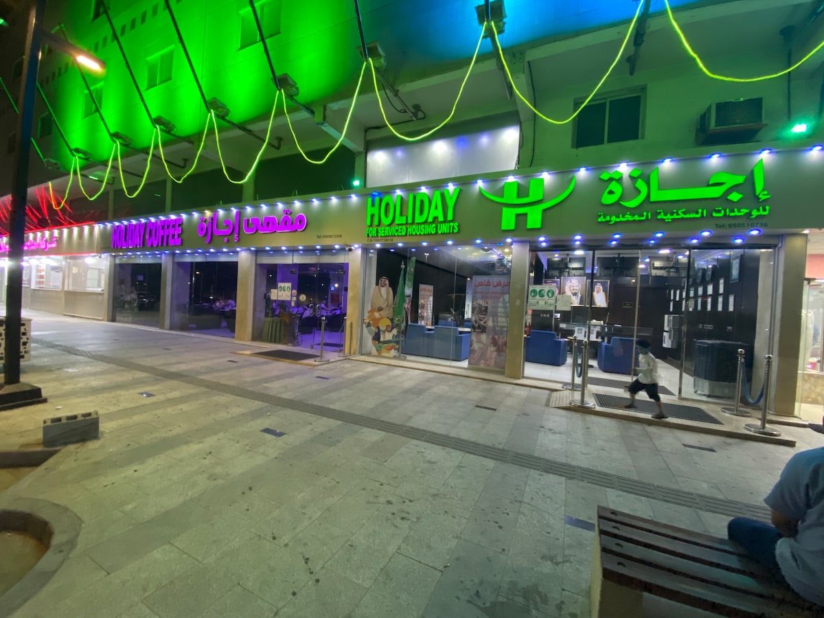 🌟 Kifinomult élmény Al Khobar szívében! 🌟 Örömmel kínálunk neked egy különleges lakhatási élményt Al Khobar egyik legszebb környékén, kivételes helyen, közel a Bahrain hídhoz, valamint olyan híres kávézókhoz, mint a Starbucks és a Tim Hortons. A szálláshely jellemzői: Hálószoba kényelmes franciaággyal Egy elegáns és kényelmes kialakítású nappali, amely tökéletes pároknak és családoknak Fürdőszoba minden alapvető kellékkel 🔒 Magánélet és teljes nyugalom, távol a zajtól Fontos megjegyzések: Kérjük a vendéget, hogy tartsa tiszteletben a szálláshely csendes környezetét. 📩 Foglalj most, és élvezd a kényelem és a luxus legfinomabb részleteit!