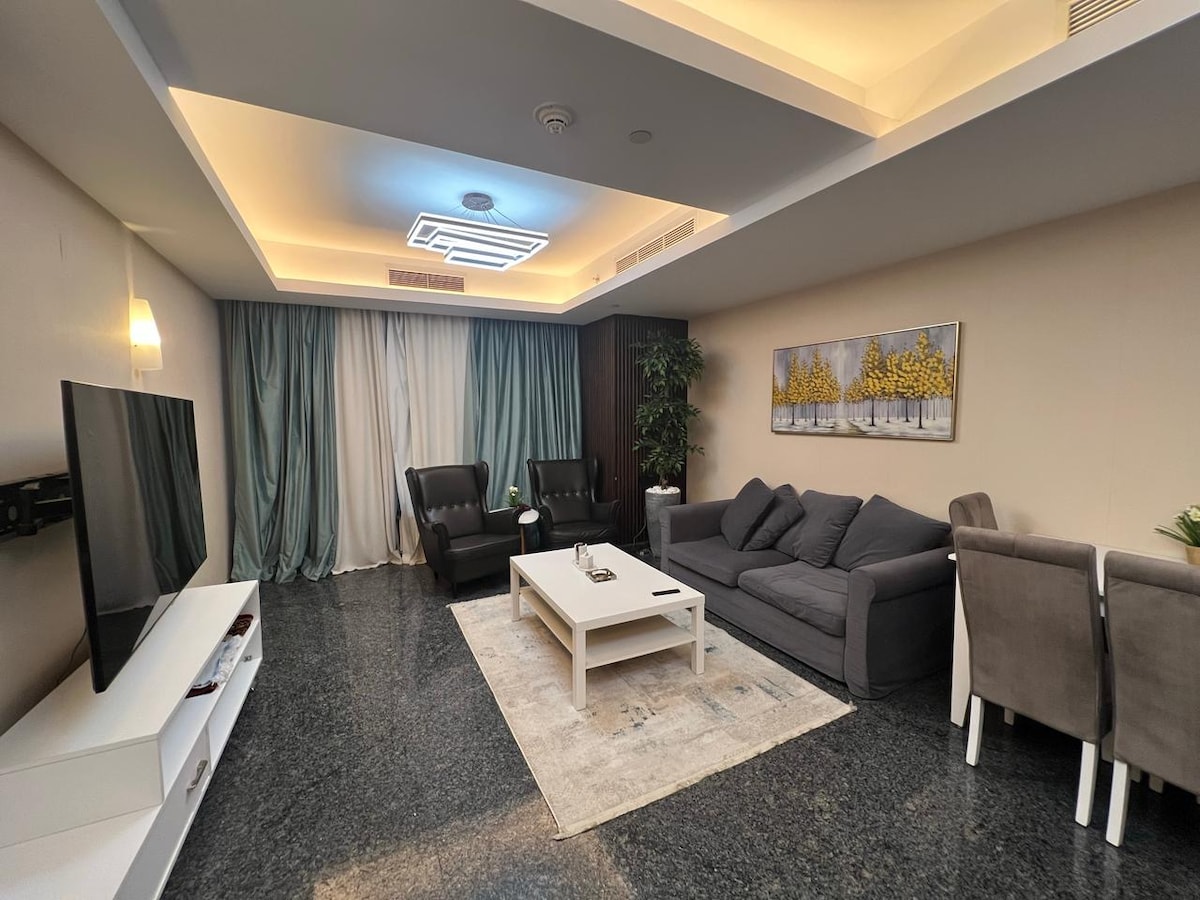 This stylish place to stay is perfect for group trips. -Experience luxury and serenity in this spacious 36th-floor apartment, offering breathtaking views of Cairo's skyline and the iconic Nile River. Thoughtfully designed, the apartment blends vintage charm with modern comforts, creating a perfect retreat for families or professionals. Relax in the elegantly furnished living area, dine in style, or enjoy the stunning nighttime views from the private balcony.