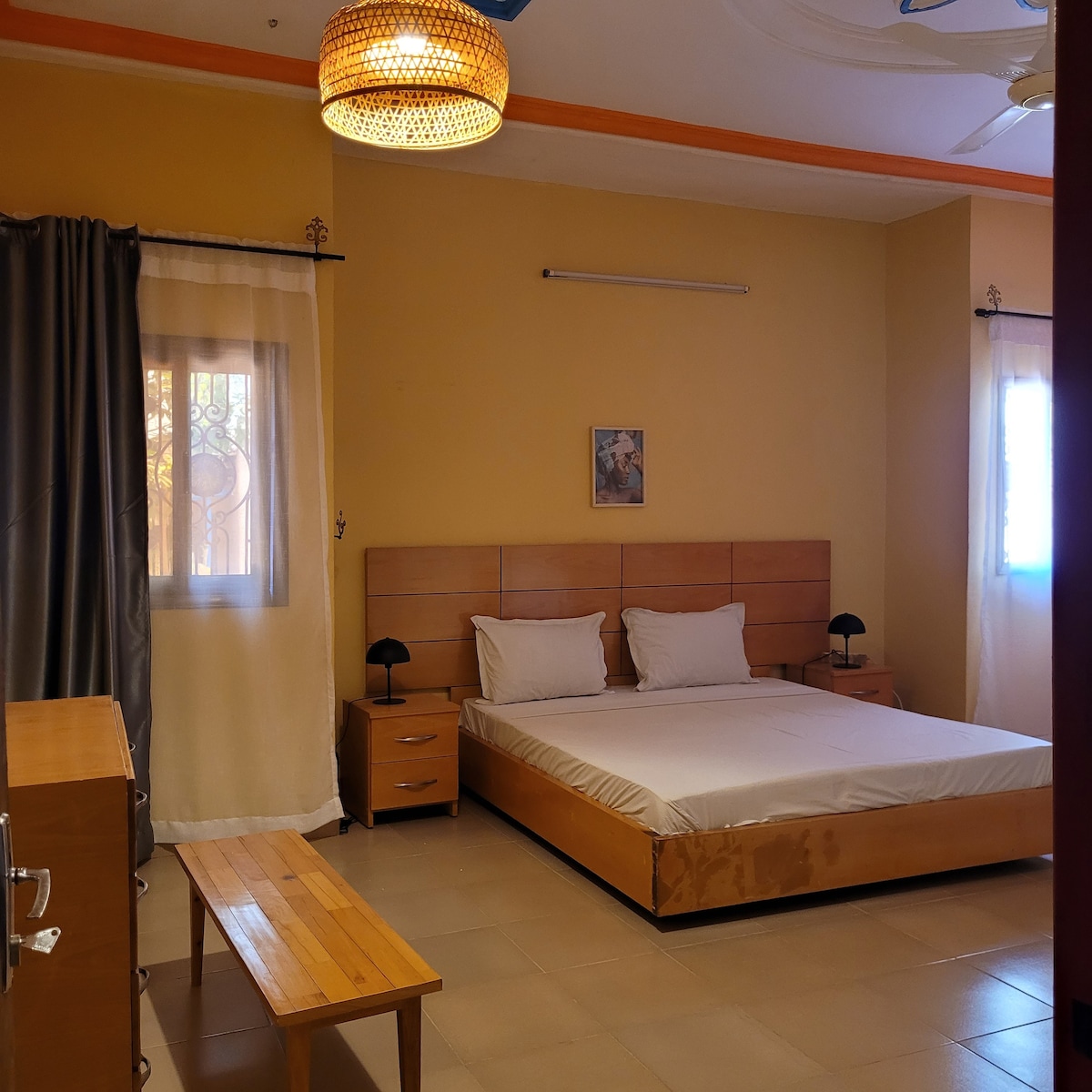 Szeretnéd felfedezni Burkina Fasót „a helyszínen”, miközben felszerelt és kényelmes szálláshelyen szállsz meg?A családi udvar szívében található vendégházunk lehetővé teszi, hogy magával ragadó élményben legyen részed, miközben teljes önállósággal rendelkezel, mivel a szálláshely teljesen felszerelt. Közel van a főúthoz, ahol a kis üzletek találhatók, és ahol a taxik futnak. Rövid vagy hosszú távú bérbeadás (drasztív árak) és különböző szolgáltatások (étkezések, mosás...).