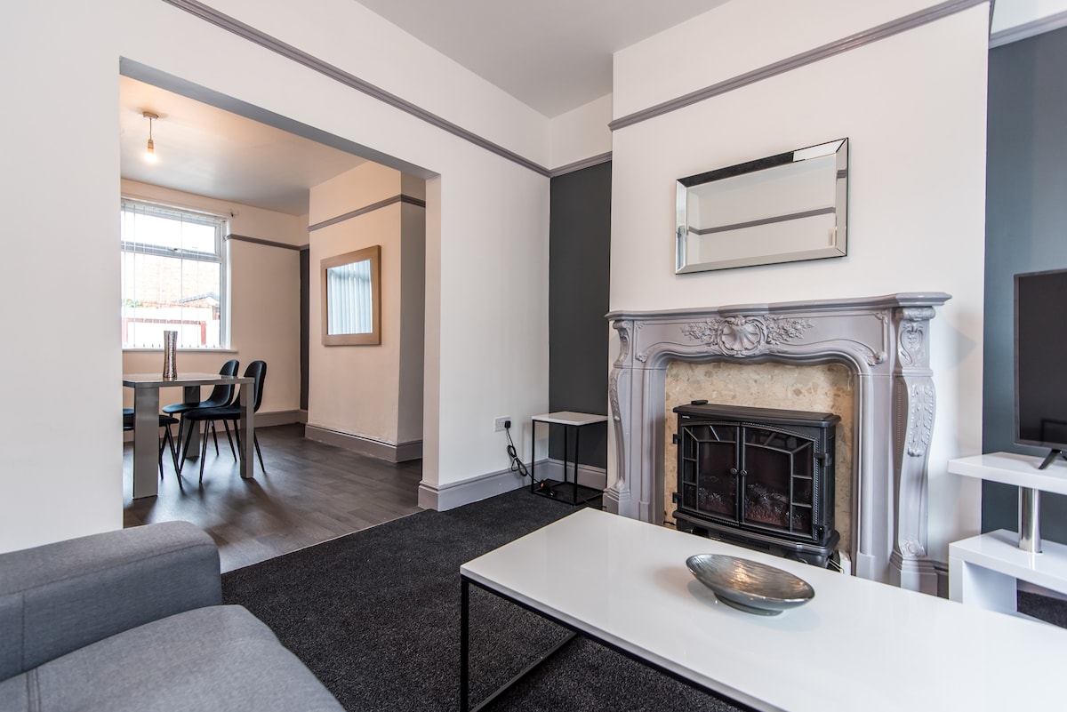 Church End Cottage is a complete home from home ,located in a unique spot , right in the centre of Darlington . The downstairs is fully open plan , with lounge ,kitchen and dining area all combined . There is a downstairs bathroom too as well as an upstairs one ,accessible from both of the decent sized bedrooms . Yard - sun all day ! Pets : we are pet friendly too , our yard is secure for dogs and just two minutes away there’s a park to walk your dog .