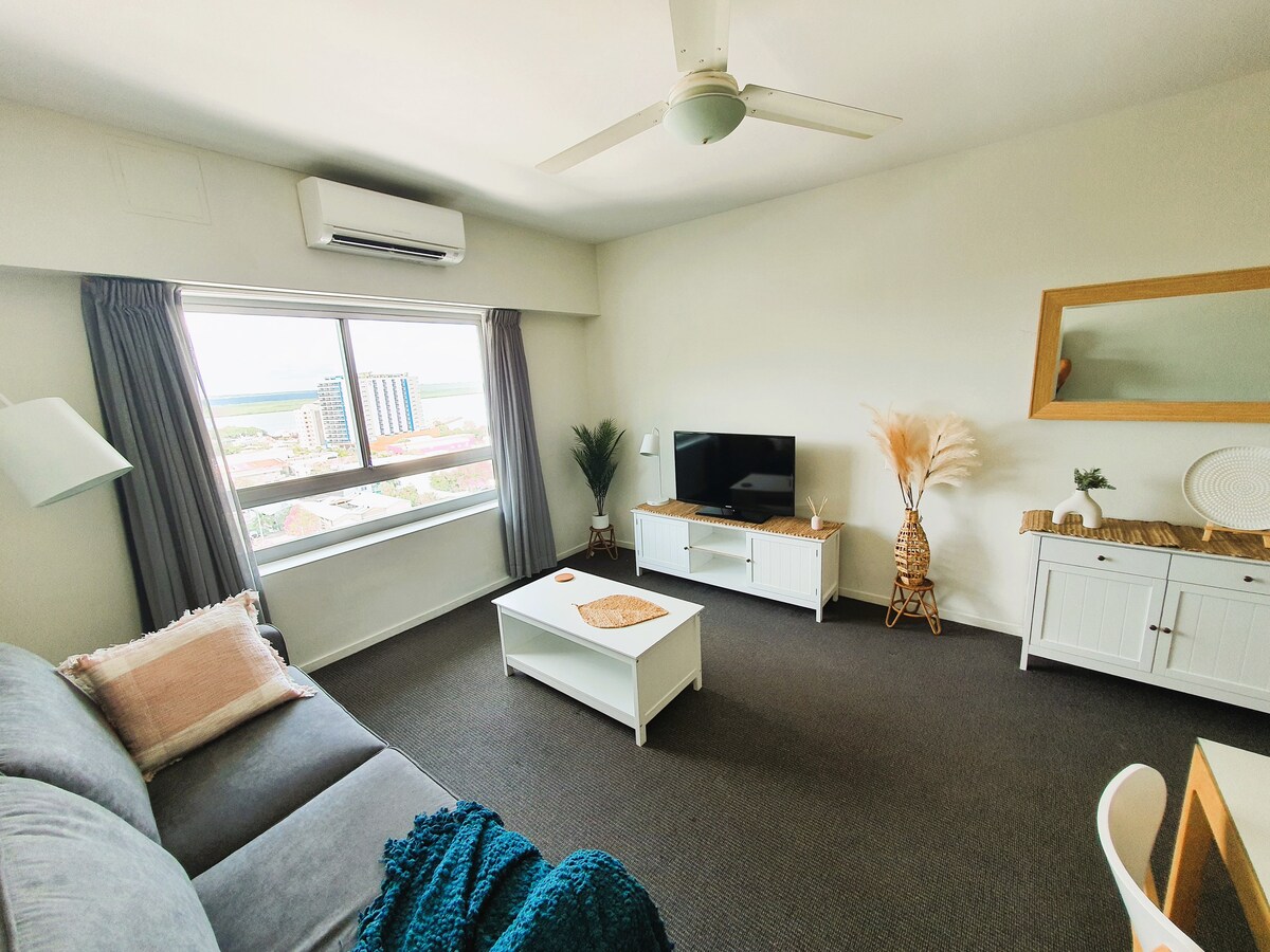Top reviews. Read our reviews and book with no hesitation. One bedroom apartment on level 10 of Pandanas Darwin. Offers fantastic views over the pool & the city. Other facilities: balcony, kitchenette, separate living area, bathroom, AC, fans, smart TV, work desk, safe, pool, gym & parking. At the heart of the city, walking distance to everything you may do in the city (Restaurants, offices, clubs, shops, etc..). Additional ottoman sofa bed (please confirm if you need when booking).
