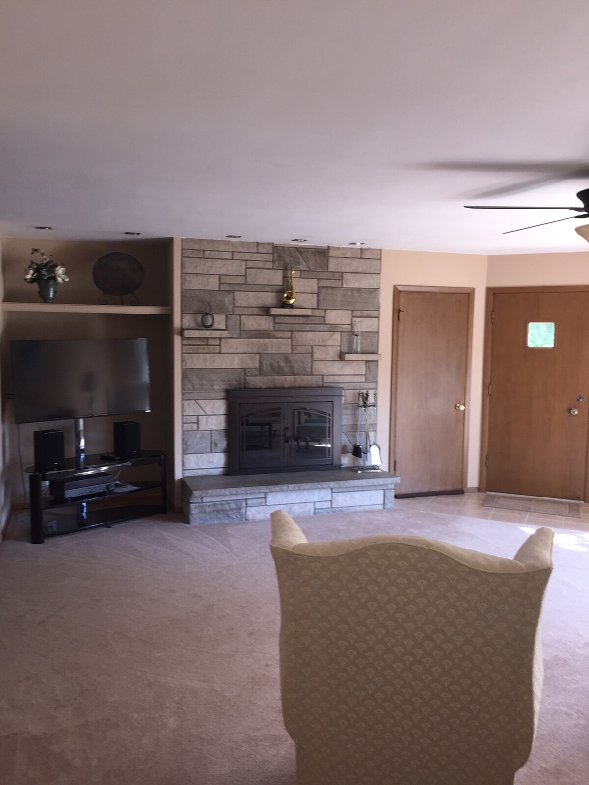 Spacious 4BR/2.5BA duplex (left side) in Davenport, IA, perfect for 10-12 guests. Features 2 king beds, 1 queen, 2 full beds, and a queen pullout sofa. Enjoy a 55" Samsung Smart TV in the living room, and smartTVs in the 3 bedroom, Capcom arcade, 1GB Wi-Fi, work space, central AC with Nest thermostat, and in-unit washer/dryer. Relax on the private back deck or in the shared backyard. Driveway parking for 2 cars (no street parking).Ideal for work crews or groups seeking comfort, near I-80 and loc