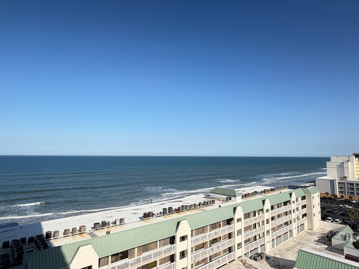 Most nyílt! Üdvözlünk a Daytona Beach Blissben! Élvezd újonnan felújított, egy hálószobás lakásunkat, ahonnan csodálatos kilátás nyílik az óceánra a 7. emeletről. Reggel az erkélyről nézheted a napfelkeltét, és talán még delfineket is láthatsz! Pihenj a tengerparton, csak pár lépésre vagyunk a saját tengerparti hozzáférésünkkel! Vagy tölts el egy kis időt az óceánparti fűtött medencében és a pezsgőfürdőben. Strandtörölköző, hűtő, két nyugágy és napernyő is rendelkezésedre áll!