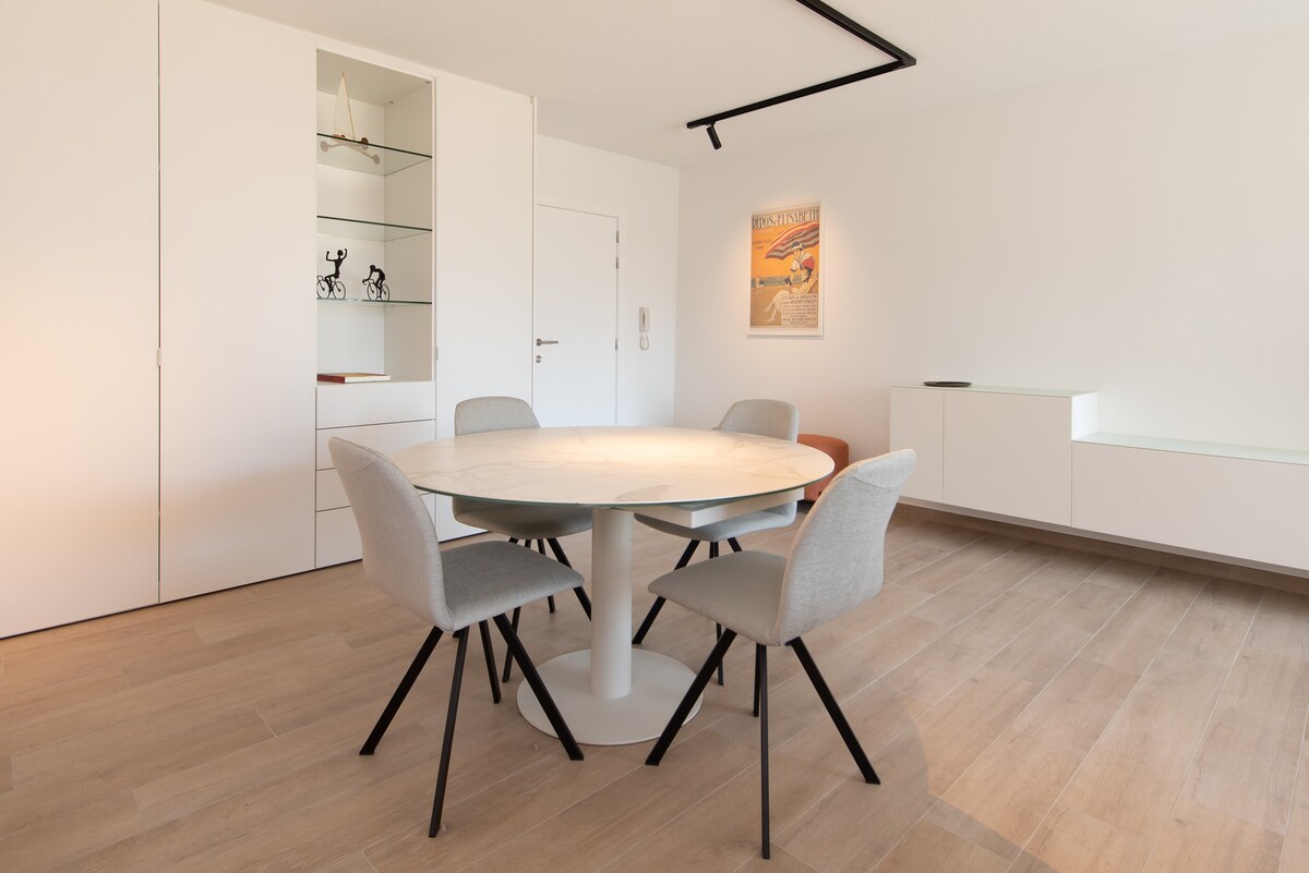Stunning 4+2 person apartment with spacious corner balcony, view at the sea and luxurious furniture. 1 Master bedroom with king-size bed, 1 second bedroom with 2 single beds, 1 sofa bed for 2 extra guests. Underground garage in same building included. 10-min walk to the beach and 5 min from the vibrant esplanade. Nearby tram station with access to the coast, Plopsaland theme park and train station.