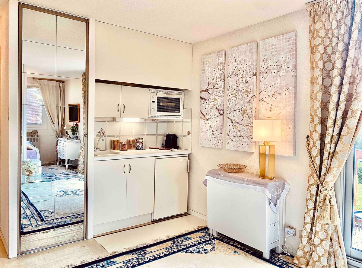 Ez a felújított szálláshely tökéletes helyen van, és könnyű hozzáférést biztosít minden helyszínhez és kényelmi szolgáltatáshoz. Közel éttermekhez, bárokhoz, kisbolthoz, pékséghez, halpiachoz és a híres Trouville piachoz szerdánként és vasárnaponként. 6 perc sétára a Deauville-Trouville vasútállomástól és 6 perc sétára a strandtól és a kaszinótól. Ingyenes parkolóhelyek a közelben és fizetős parkolás az utcán. Nincs Wi-Fi
