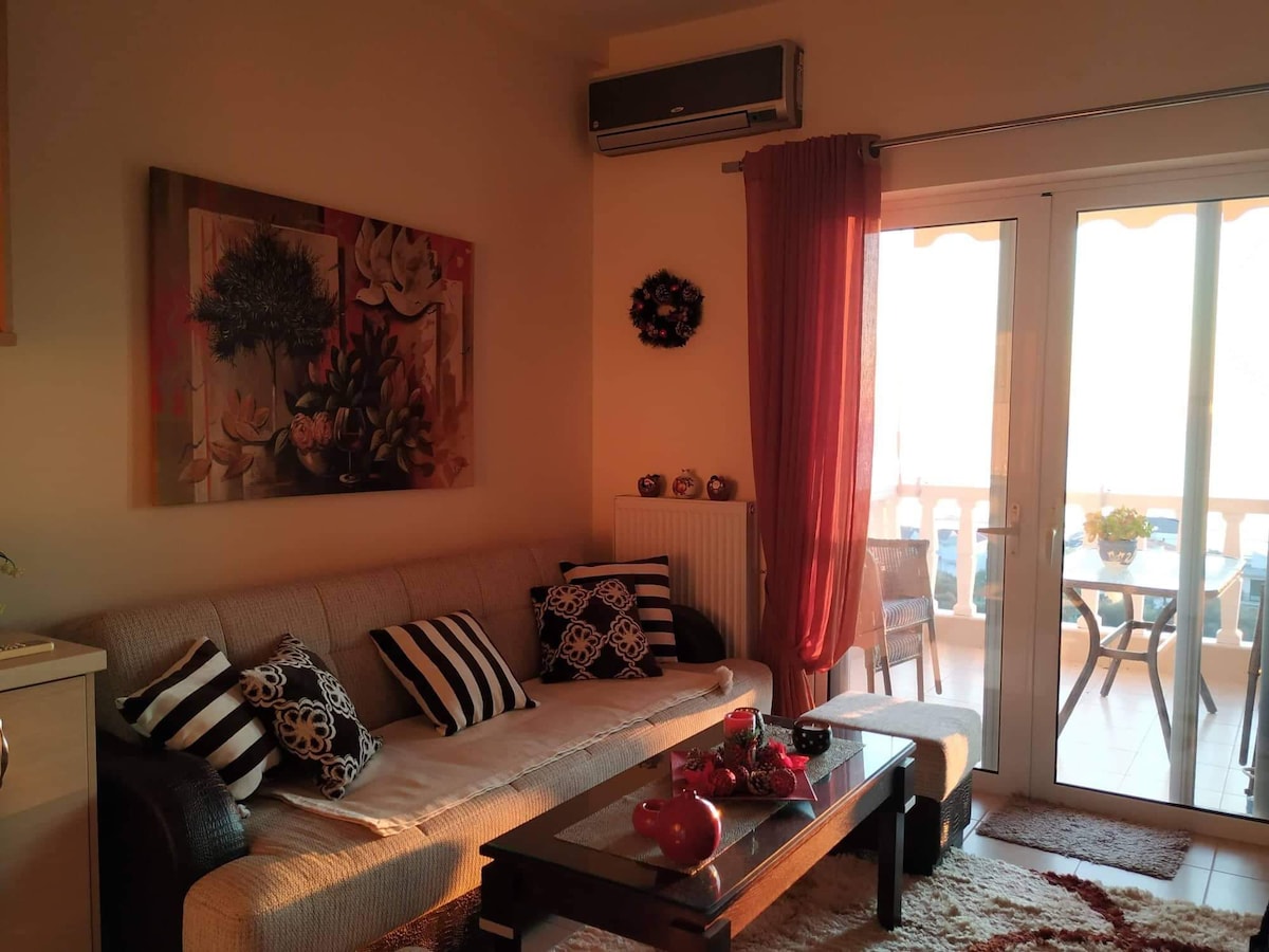 Gyönyörű lakás, kilátással a Jón-tengerre. Gyönyörű ülősarok kandallóval. A hálószoba önálló erkéllyel rendelkezik, gyönyörű hegymászó bougainvilleával. A közelben gyalog vagy autóval találkozunk egy gyönyörű stranddal. Lehetőség van ingyenes és ingyenes parkolásra közvetlenül a lakáson kívül. Meleg, barátságos hely egy nagyszerű tartózkodáshoz egész évben. Nagyon közel a lakáshoz, a környéken van szupermarket, gyógyszertár, kávézó, fodrász.