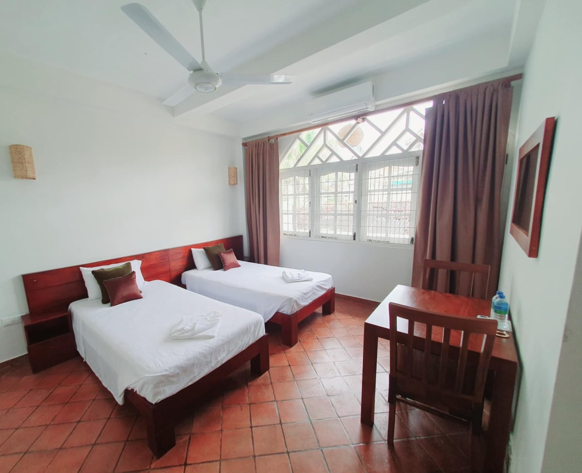 Mount Bay Guest House is situated in Mount Lavinia in the Colombo District Region. We have 6 Large Deluxe Bedrooms, all rooms have free WiFi, a private balcony, AC and ensuite bathrooms including hot water showers. Each floor has a communal seating area for guests enjoyment, there is a cafe on the ground floor and a large roof top terrace with a spectacular sea view for admiring the evening sunsets. The beach is only 30 yards away, and you have to cross the railway track to access this.