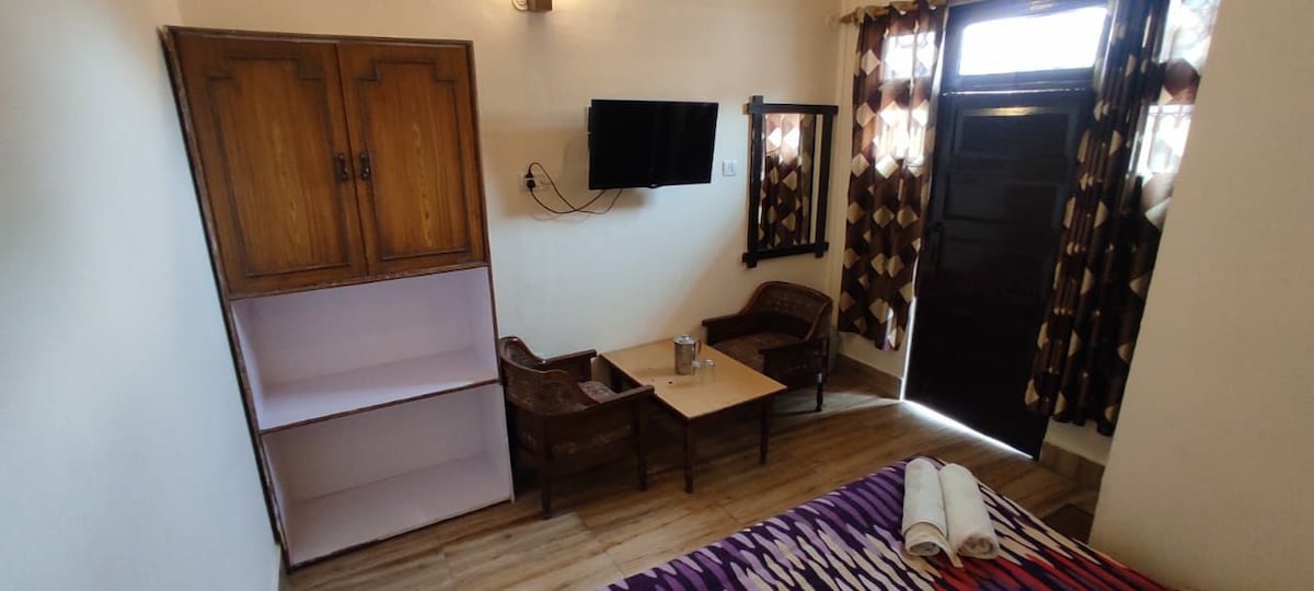 Set in lush green surroundings you will get a farmhouse feel with beautiful gardens and orchards. In the garden we have many fruit trees and seasonal organic vegetables. It is a ground floor unit with one small bedroom along with a private kitchen, a bathroom along with a private verandah where the guests can sit and enjoy nature while sipping on hot tea. It is a perfect fit for solo travelers on a budget who still can enjoy all the facilities of a premium space.