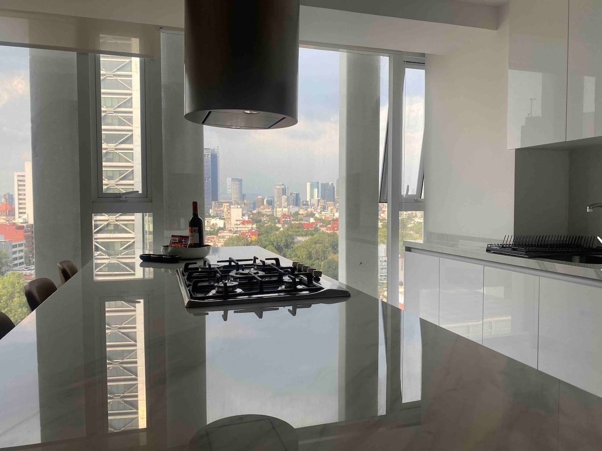 Enjoy one of the most amazing neighborhoods in Mexico City. This place is central and surrounded by restaurants, museums, and iconic landmarks within the city. The area is terrific and very well connected to the whole city. You will love the view from one of the tallest buildings in the city. Undoubtedly, it’s an outstanding place to stay and experience one of the best and biggest cities in the world.