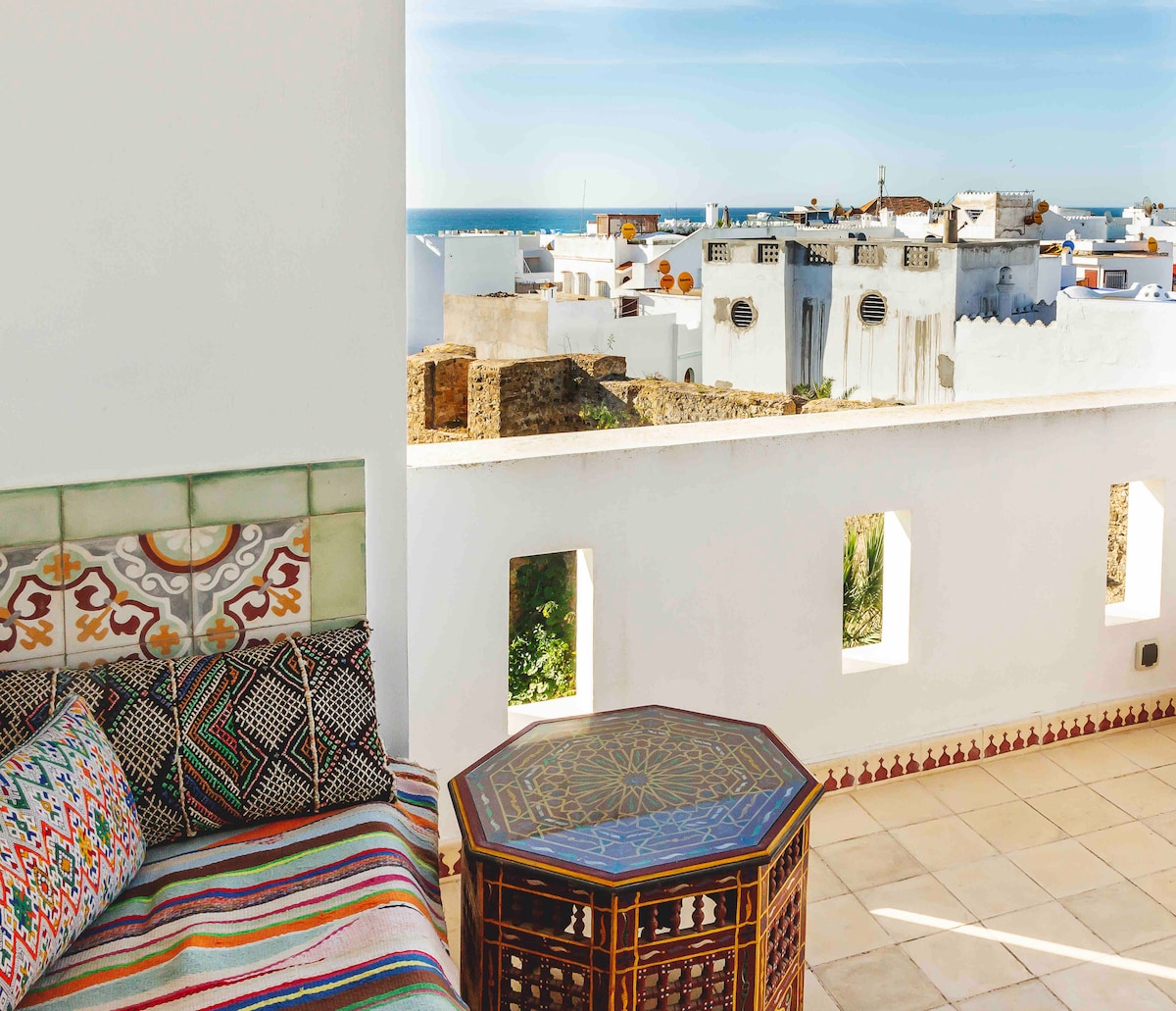 Az Asilah medinájának szívében található Dar el Maq az Atlanti-óceánra nyílik, lélegzetelállító naplementékkel. Ez a kortárs riad elegánsan díszített, és ötvözi a marokkói bájt a modern kényelemmel. Élvezd a privát szaunát a hullámok hangjára – a pihenés igazi oázisa. Minden részletet a jóllétedre terveztünk: finom ágynemű, puha törölközők, minőségi piperecikkek és átgondolt kényelmi szolgáltatások, hogy az első pillanattól kezdve otthon érezd magad.