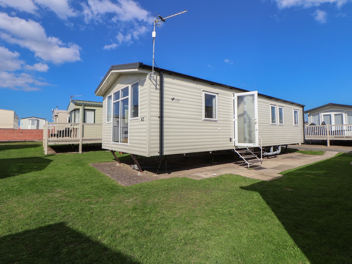 Modern, tiszta 8 fekhelyes lakókocsi (Lyons Robin Hood park. 100 méterre egy kék zászlós strandtól. 50 méterre a golfpályától. Csak egy rövid, 2-3 perces autóútra található Prestatyn és Rhyl. Helyszíni beltéri medence/csobbanótér, szórakozóhelyek, szórakozóhelyek, játszóterek, őrült golf, labdapálya, fish n chip bolt stb. Sportbár beltéri/kültéri ülőhellyel, csak felnőtteknek fenntartott szórakoztatóterem és ír bár. Snooker terem. Gyerekbarát, Családoknak és felnőtteknek egyaránt nagyszerű. Privát parkolás. Terasz a társalgóhoz. Tűz- és füstérzékelők.