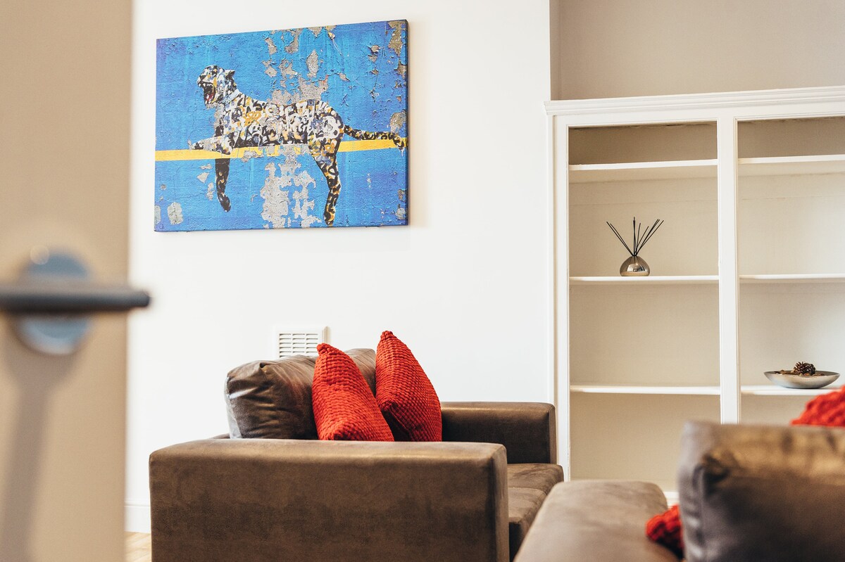 Teljes két hálószobás, 4. emelet (lift most rögzített) belvárosi lakás egy parkolóhellyel. 10 perc séta a városközpontba, 7 perc taxival a vasútállomásig. Két külön hálószoba, (1 king méretű ágy/1 kis franciaágy). Nyisd ki a nappalit/konyhát, külön fürdőszobát és tárolószekrényt. Új 4K TV Netflix/Amazon Prime/YouTube segítségével. Gyors Wi-Fi. Hűtő-fagyasztó, mosógép, tűzhely és minden várható háztartási cikk. A helyi házigazda kéznél van, ha bármilyen probléma merülne fel. Éjjel-nappali hozzáférés a kulcsszéfhez.
