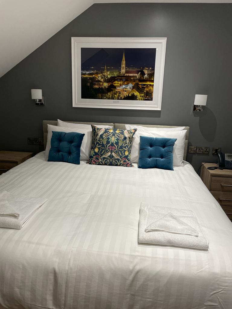 There are double, twin rooms, super king and disabled access rooms that are designed with cool tones with a pop of colour including a picture of the best landmarks within the Strabane area, ideal for business and private stays. A lift is accessible to arrive at the ground floor, where our restaurant is located. A vast variety of dishes are available from 12 noon to 9pm along with our extensive, flavorful cocktails suited for a romantic meal for two, family meals or bigger parties/ occasions.