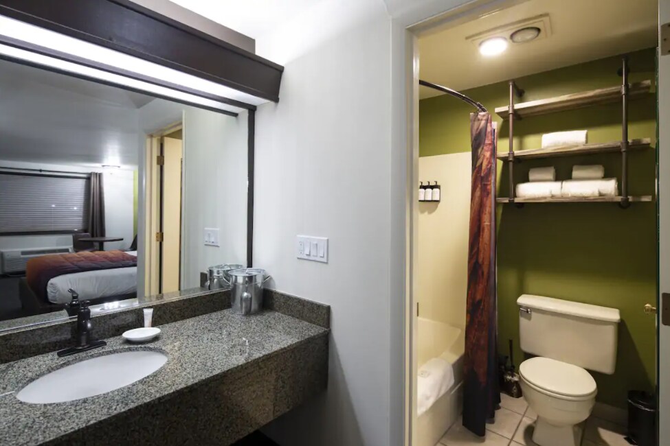 Vesd bele magad a vadonatúj Ski Inn friss pályáiba. Mi egy 6 egységből álló butikhotel vagyunk, amely a Sisters belvárosának szívében található! Engedd, hogy a Ski Inn legyen a kiindulópontod az összes központi oregoni kalandodhoz. Ez a szálláshely a 102-es szobához tartozik, amely egy privát Ada-kompatibilis lifttel rendelkezik a szobába, egy king-size ággyal, ülősarokkal, az ADA akadálymentesített fürdőszobával és a közös, körbefutó terasszal. Ne felejts el átkelni a földszinten a Taphouse-i Ski Innbe! Ada Akadálymentesített