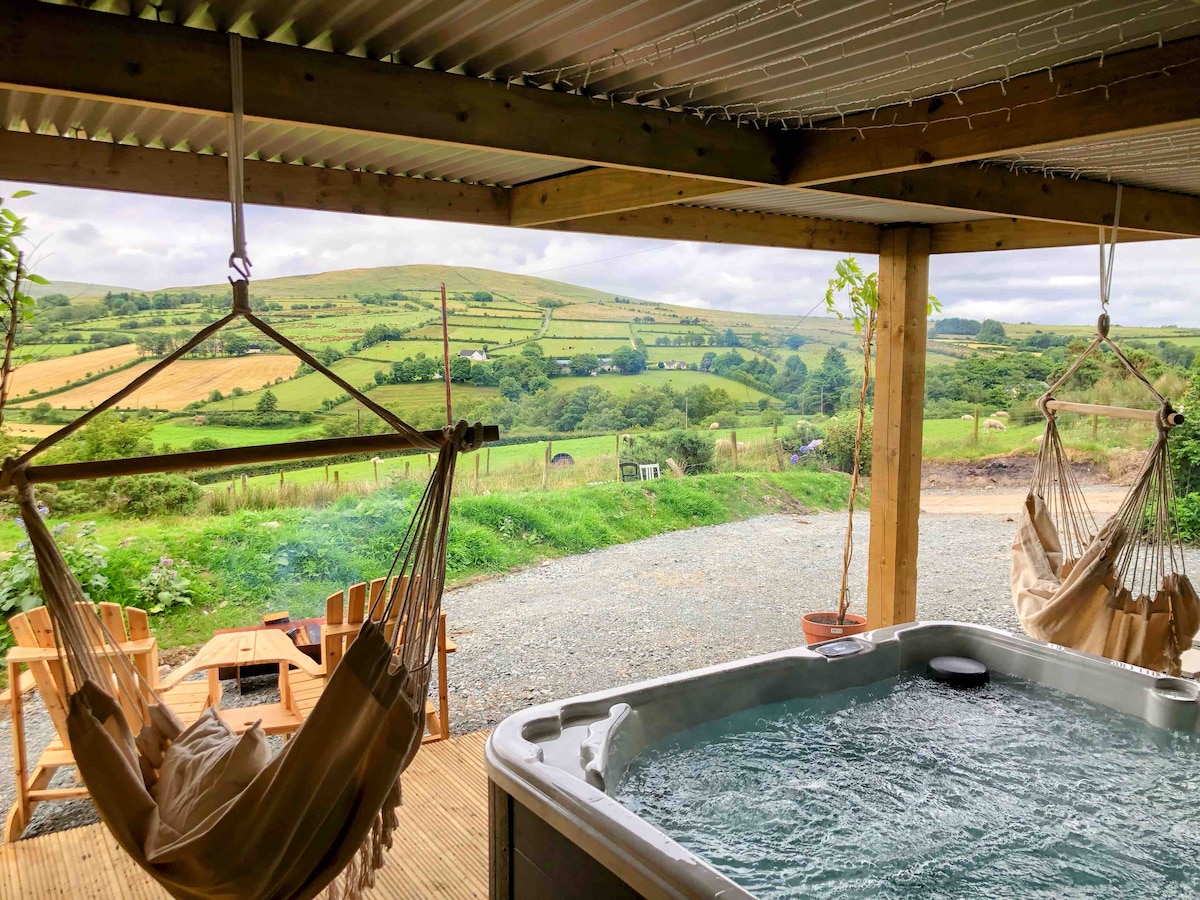 An Doras Bui offers stunning views in the idyllic Sperrins. Our hut is one of a kind and is situated to allow you the utmost privacy. Arrive in time to go back and forth between the firepit and hot tub. Wake in the morning to the abundant bird song.This is a country retreat to get away from it all. We are a convenient driving distance (<10 mins) to the nearest village. The whole area is brimming with activities and beauty not to be missed during your stay.