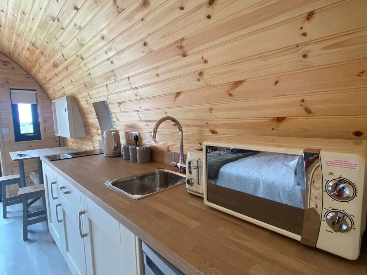 Come stay in our Secluded secret garden, stylish cabin on a working dairy farm, perfect for 2 (sleeps 4 if needed). Enjoy a private, covered 5-seat hot tub, stunning countryside views, fire pit, and cozy patio. Inside features a comfy double bed, sofa bed, and peaceful décor with modern touches. NO PETS . Ideal for relaxing, stargazing, and escaping the hustle of everyday life. Includes a local guidebook with top nearby dining and activity recommendations. Play music outside it won’t disturb 😀