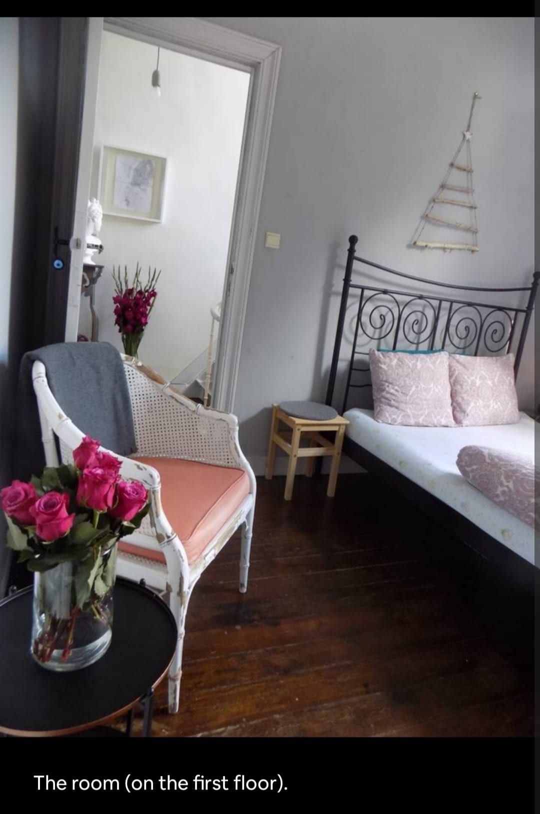 Hangulatos és napos szoba kétszemélyes ággyal és saját fürdőszobával. A házam a Scheldt folyó mellett található, Gent külvárosában. A következőket kínálom neked: jó ágy, privát fürdőszoba, wifi, törölközők, hajszárító, hűtőszekrény, okostévé, kávé/tea, sötétítőfüggönyök... És egy nagy mosoly tőlem ;-)