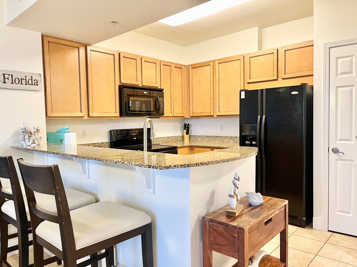 Newly updated 1 bedroom/ 2 bath condo with built in bunkbeds. Located beach side on the 19th floor with breathtaking panoramic views of the emerald waters and pristine white sand beaches The Gulf of Mexico. Fully stocked kitchen with new granite countertops and slate appliances. Reliable fast high speed internet throughout. Resort amenities include a large pool and hot tub, a beachside tiki bar serving frozen drinks and beer. A fabulous cafe that serves hot breakfast, pizza, sandwiches & salads.