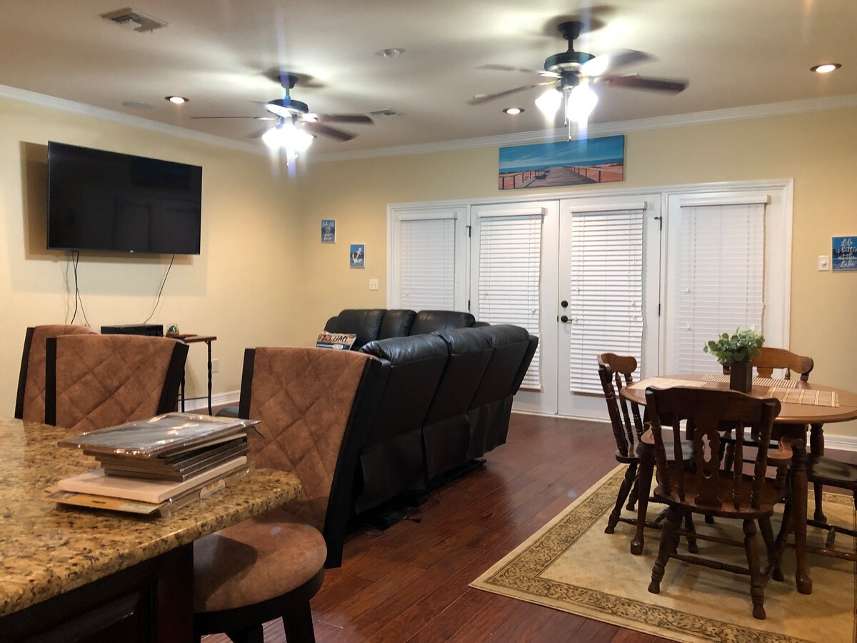 Üdv a The Jukebox Jointban! 🎶 Egyedülálló szállás az 50-es évek jegyében Del Rioban. • 3 nagy TV • Biliárdasztal és pingpongasztal • Teljesen működőképes zenegép • Étkező retró stílusban • Teljesen felszerelt konyha új készülékekkel • Teljesen felszerelt kávézó ☕ • Irodaterület nagy sebességű internettel • Mosógép és szárítógép • 3 tágas hálószoba • 1 king méretű ágy • 2 queen méretű ágy • A kanapé ággyá alakítható • Parkolás 6 jármű számára (4 az utcán kívül, 2 garázsban) A biztonságos, nagyon népszerű Buena Vista környéken található.