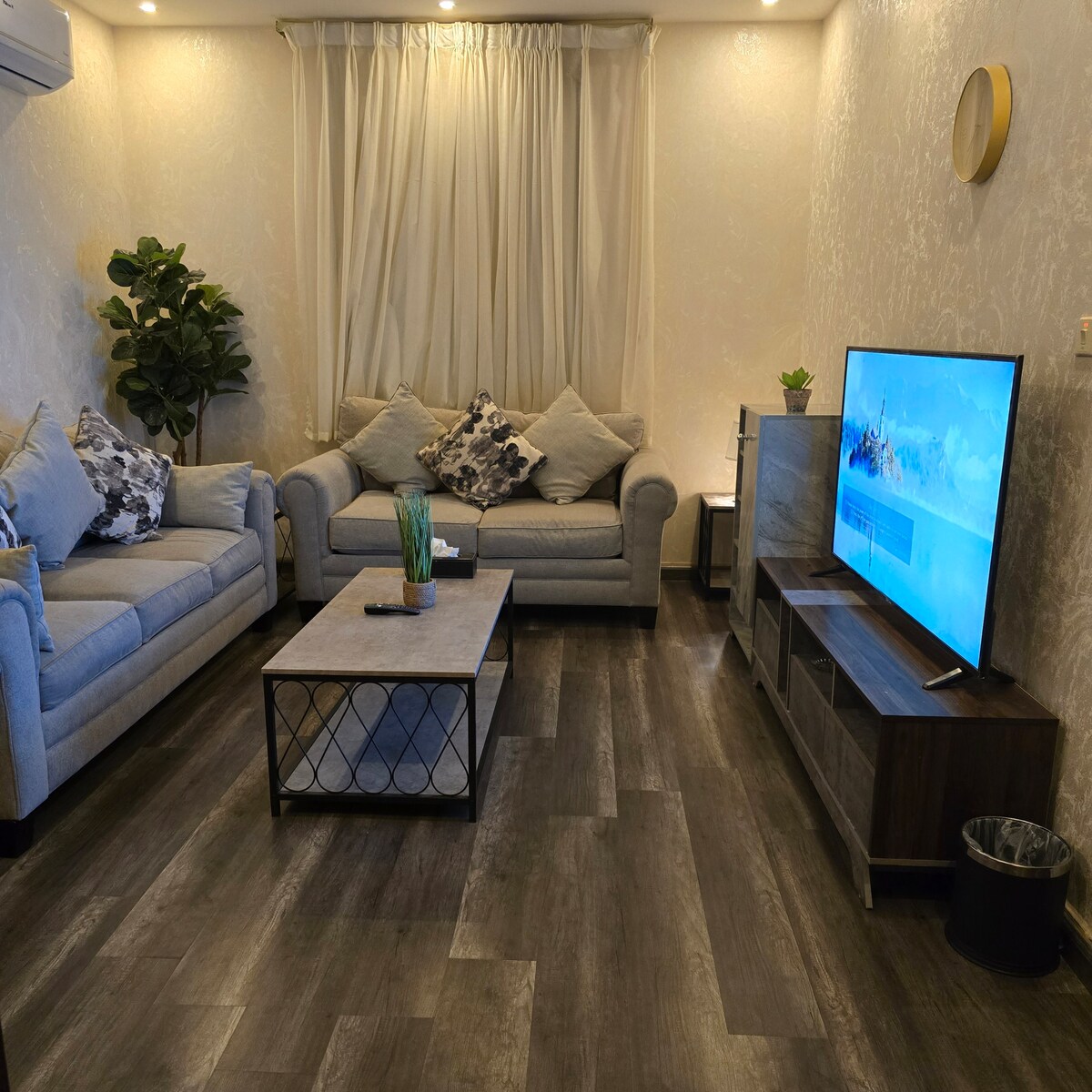 Modern, 1 hálószobás lakás Hittinben, Riad egyik legjobb környékén, percekre a Boulevard Citytől és a legjobb kávézóktól. A kényelemre és az egyszerűségre tervezve, önálló bejutással és teljes intelligens rendszerrel. A szálláshelyen egy hangulatos nappali, egy kényelmes hálószoba, egy 85 hüvelykes okostévé és egy elegáns elektromos kandalló biztosítja a pihentető légkört. Teljesen felszerelt konyha sütővel, mikrohullámú sütővel, elektromos tűzhellyel, mosogatógéppel és mosógéppel. Letisztult, stílusos és ideális párok, üzleti utazók, valamint rövid vagy hosszabb távú foglalások számára.
